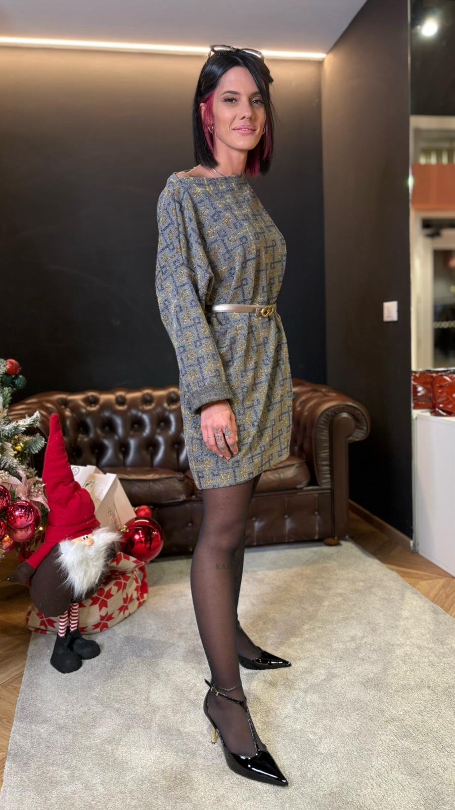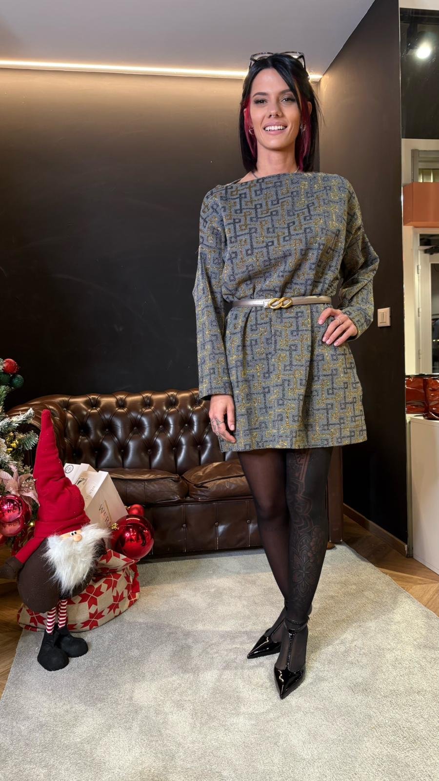 La fantasia jacquard regala carattere e personalità, mentre lo scollo a barchetta e le maniche ampie donano quel movimento leggero che ti accompagna in ogni momento della giornata.