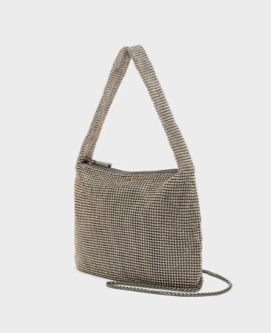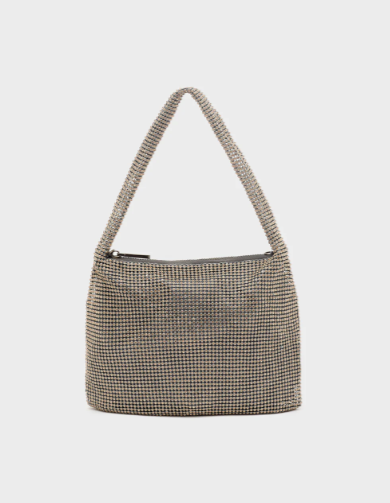 Borsa Jackie a spalla in maglia con pietre - Argento