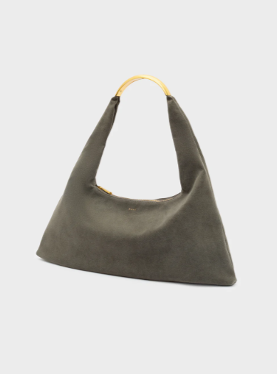 Borsa Mila a spalla effetto scamosciato con manico dorato - Grigio