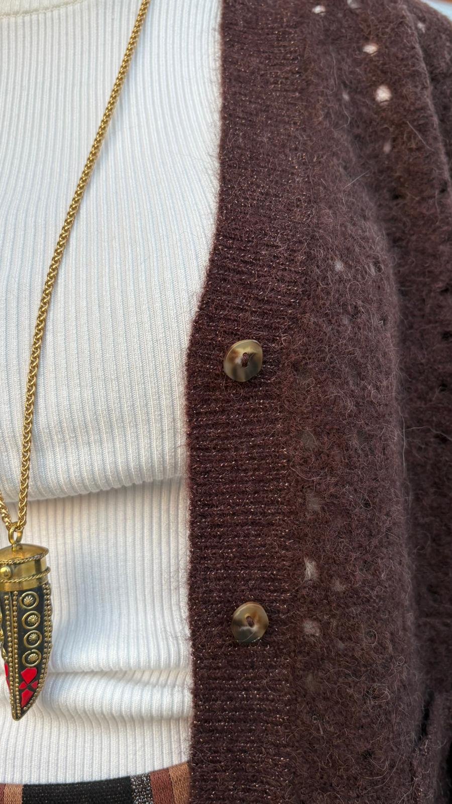 Cardigan traforato “Nuriette Dot Pointelle” – Nümph - Marrone