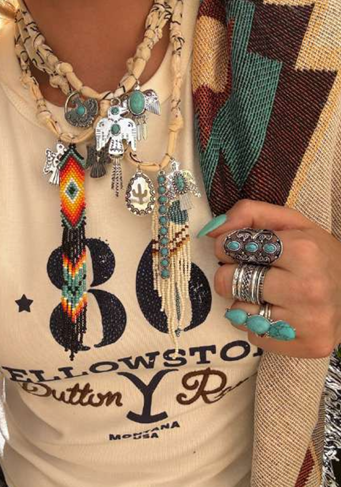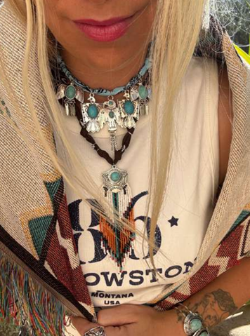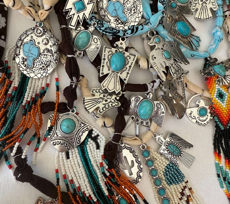 Un intreccio di bandana, argento e turchesi che cattura la luce e racconta di viaggi, vento e libertà.