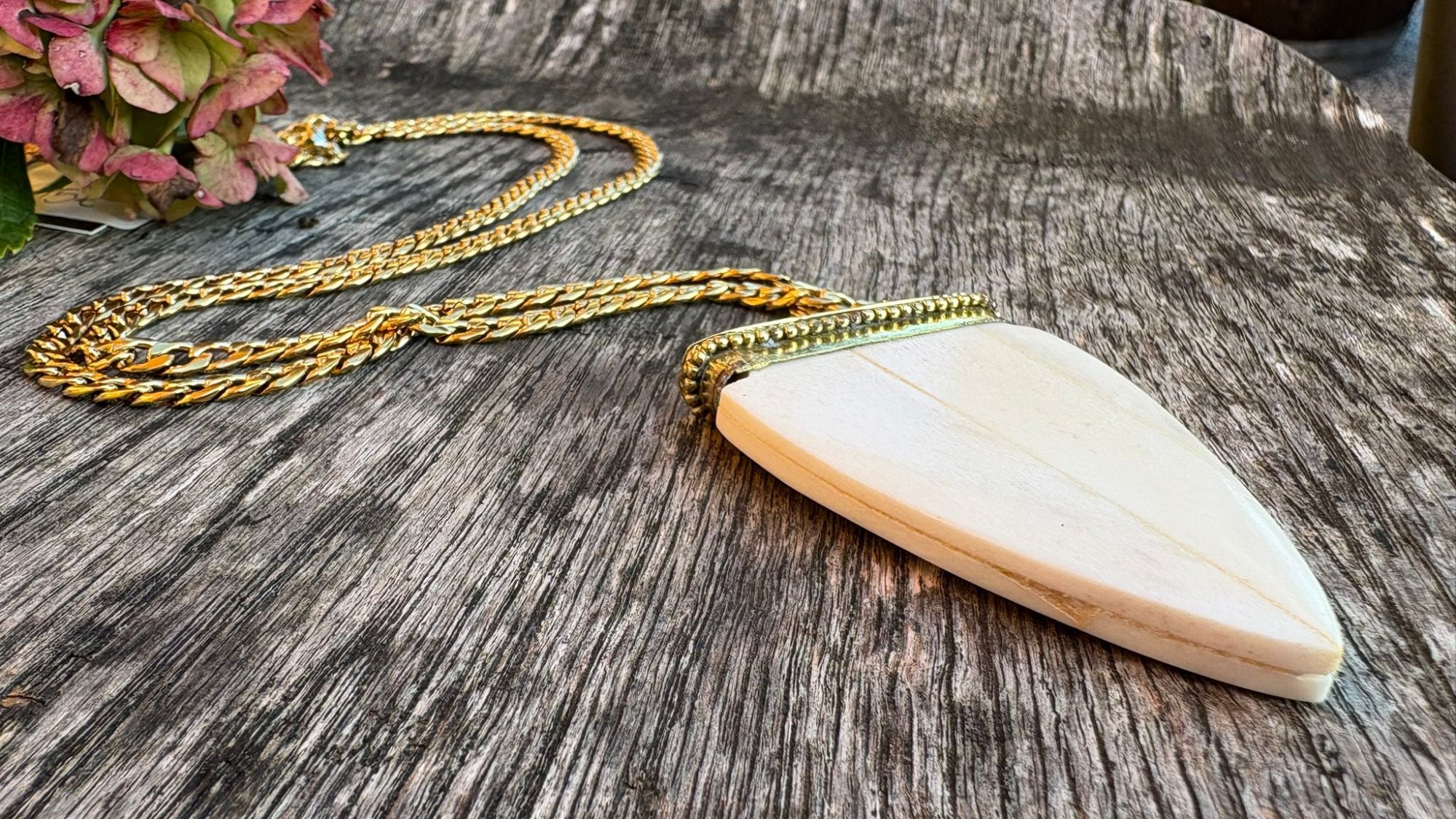 Collana Freccia in osso naturale e catena dorata – Gipsy Chic Lovers