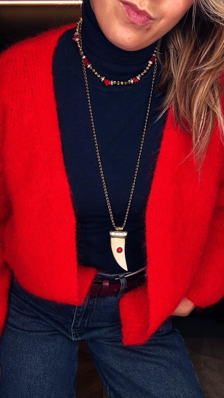 Collana lunga zanna in osso e dettagli rossi – Gipsy Chic Lovers