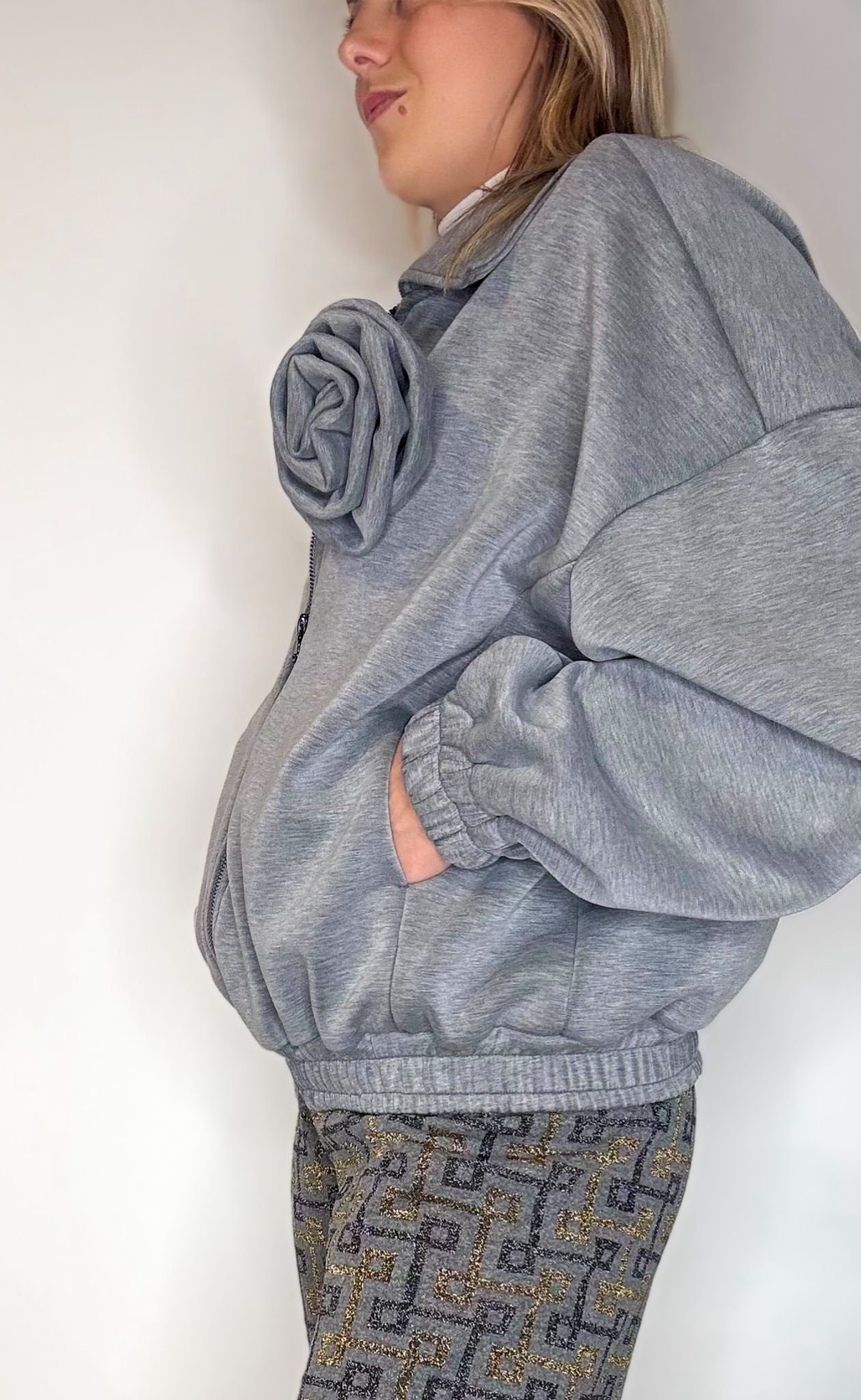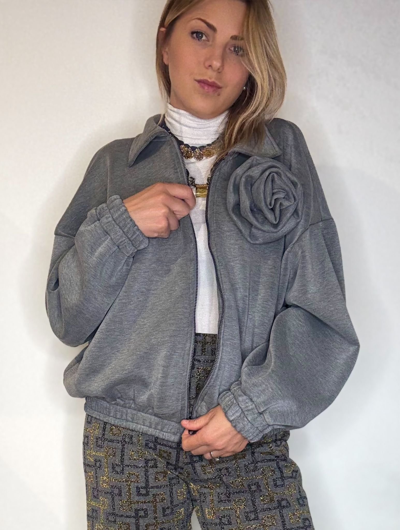Felpa in jersey di viscosa con rosa rimovibile – Giulia Matilda - Grigio