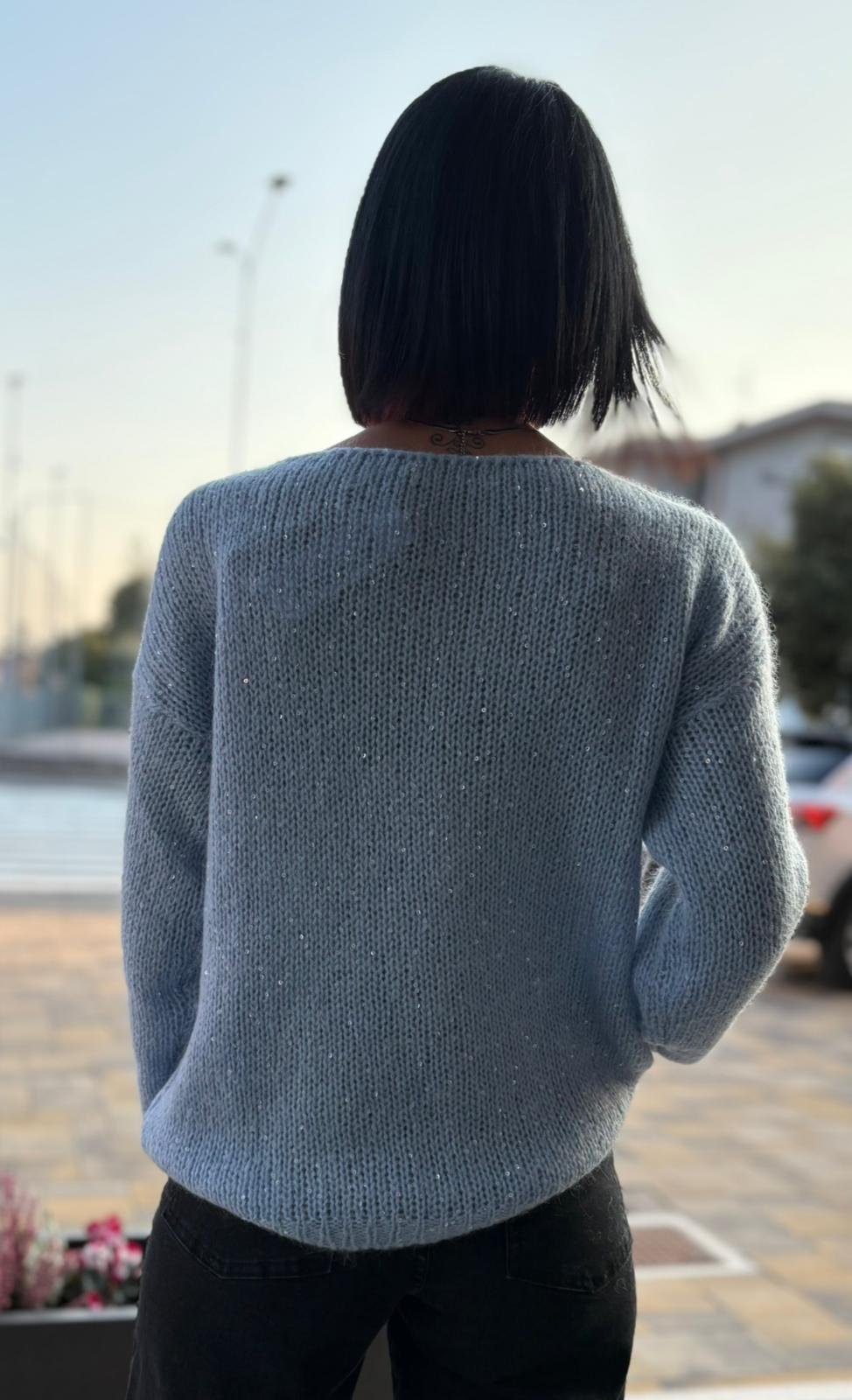Maglione azzurro con micropaillettes argentate – Eclà - Azzurro