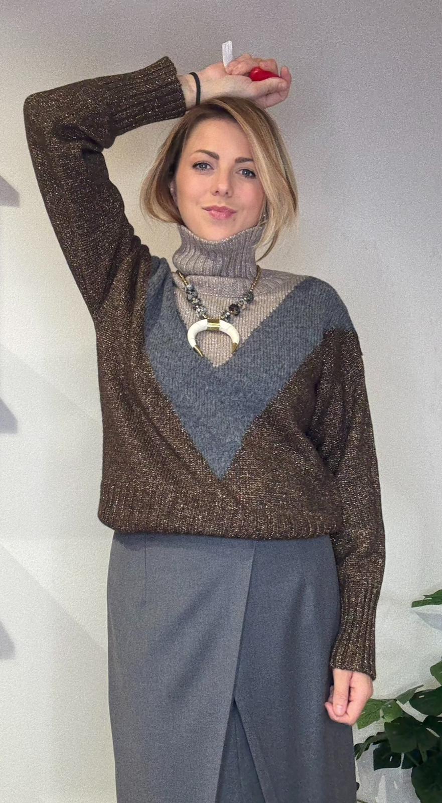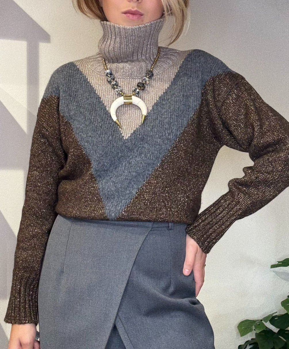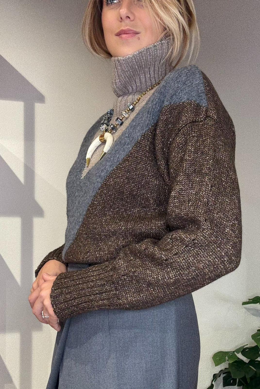 Questo maglione è un piccolo capolavoro di equilibrio — caldo ma leggero, sofisticato ma quotidiano, con quella V frontale che disegna la figura e illumina il viso come un dettaglio di stile pensato e mai casuale.