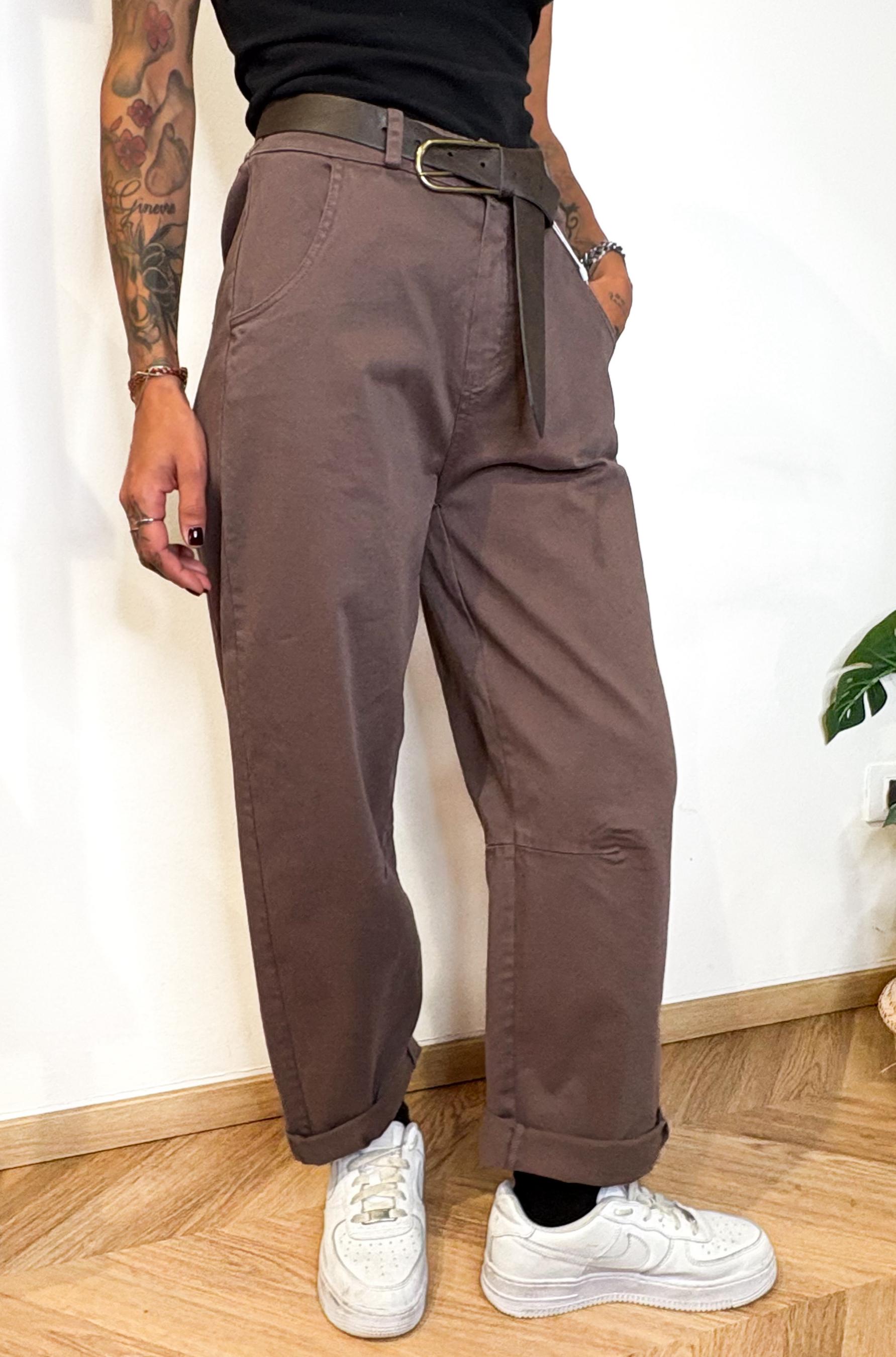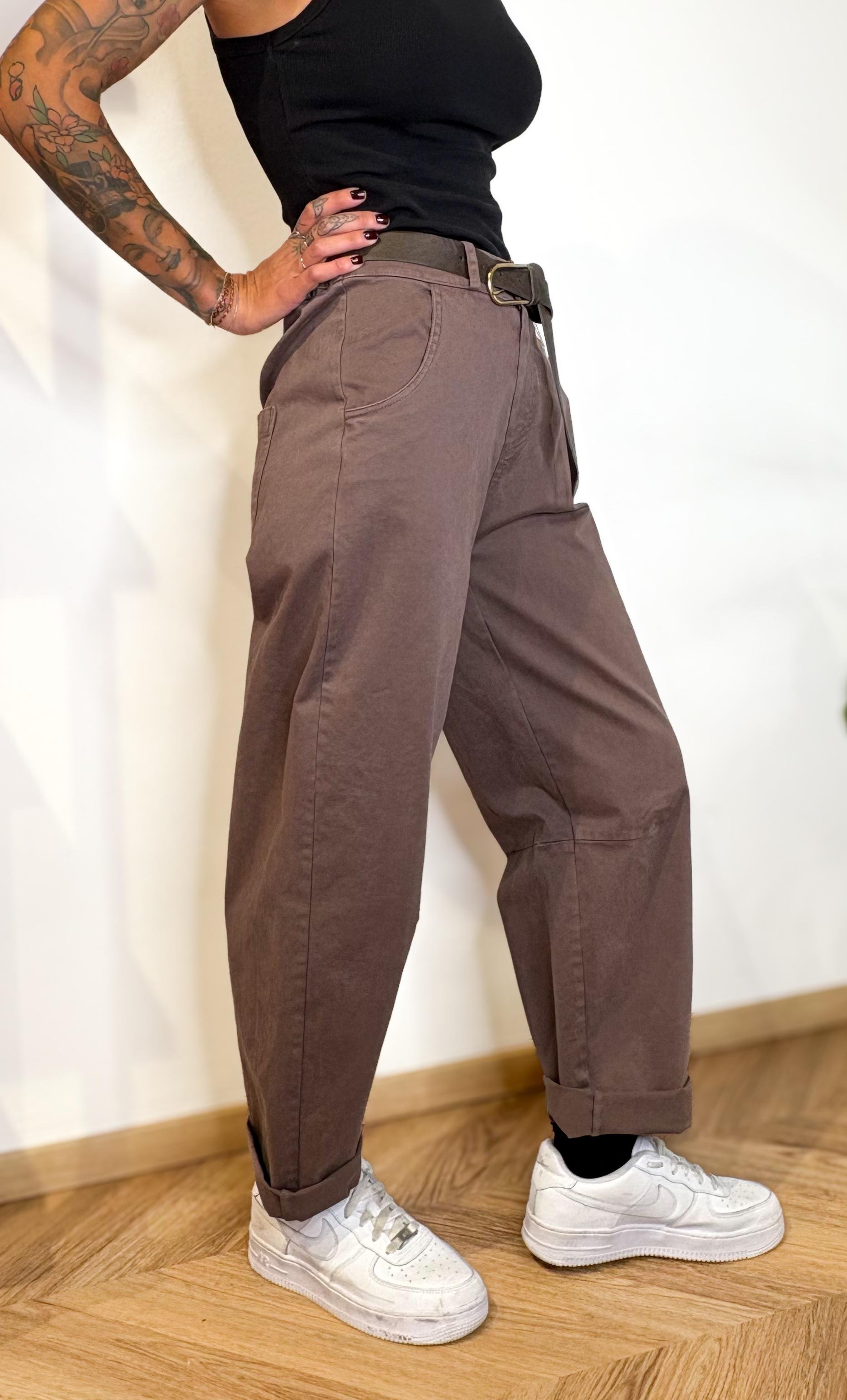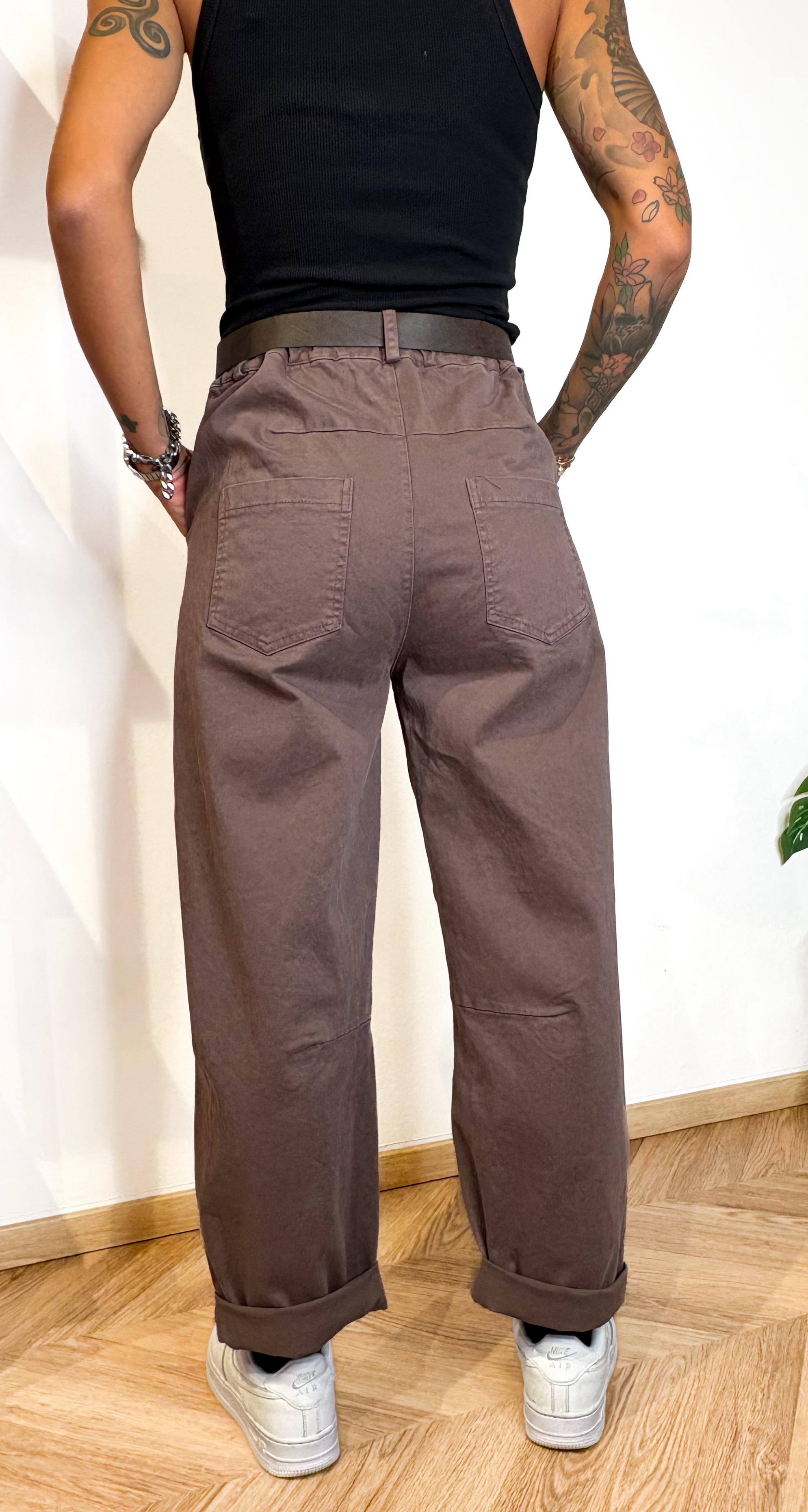 Pantalone Fondente in Cotone con Cintura - Marrone