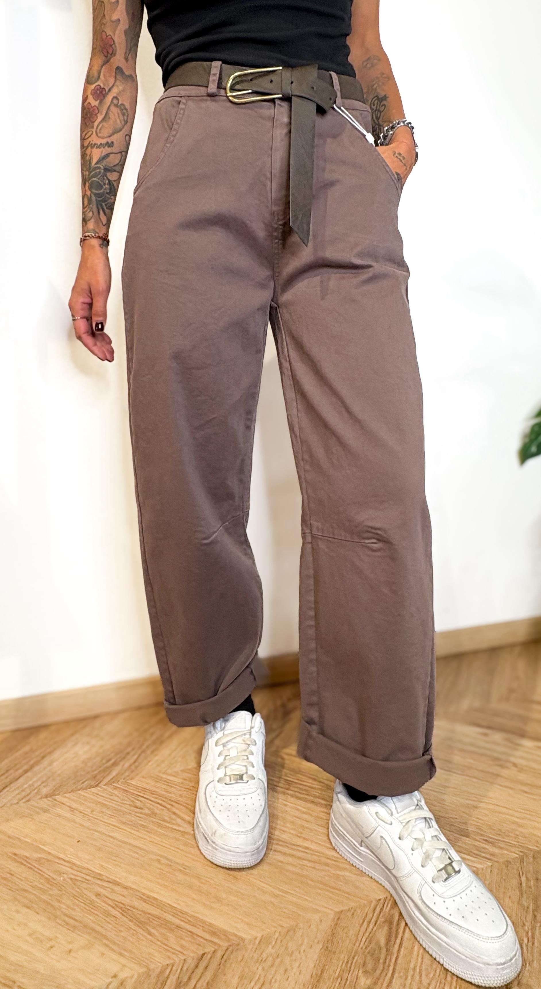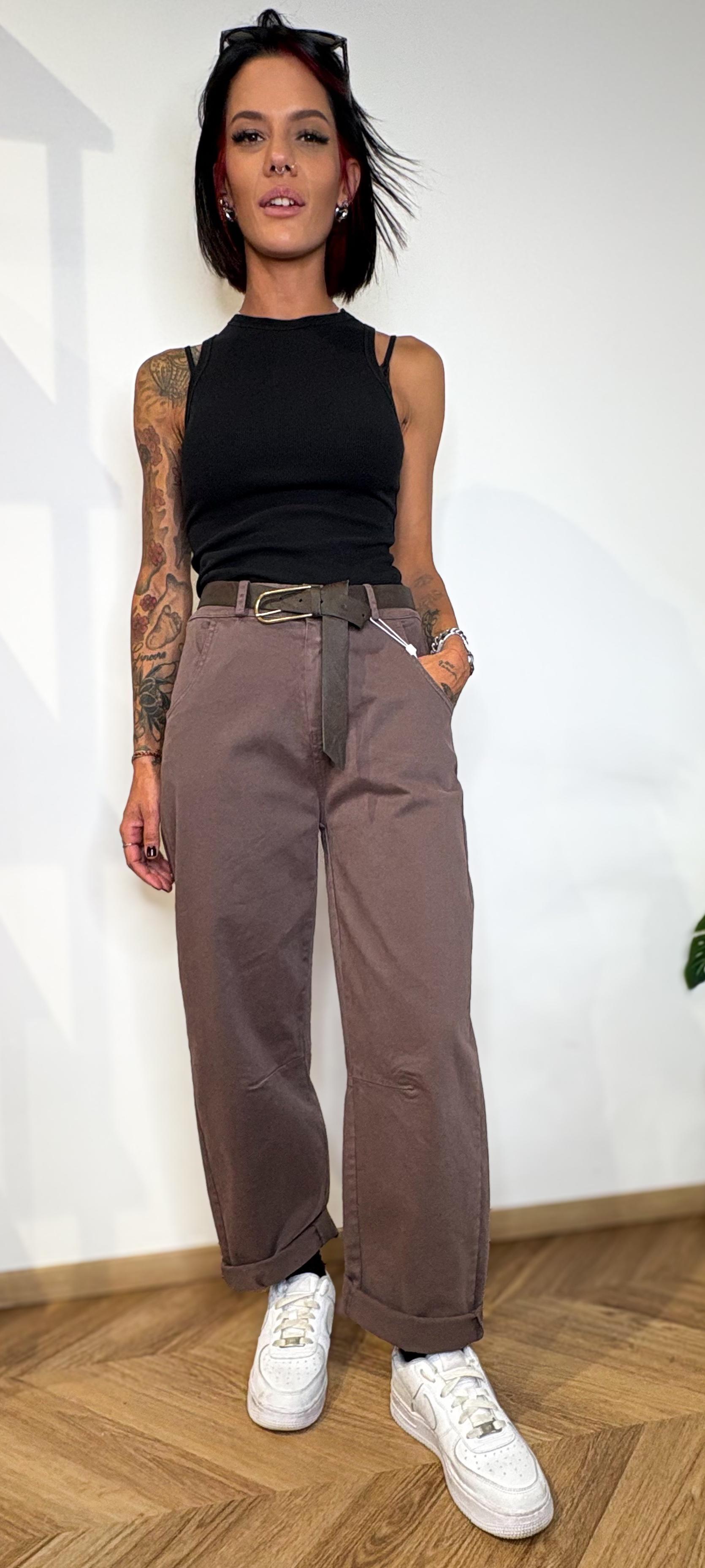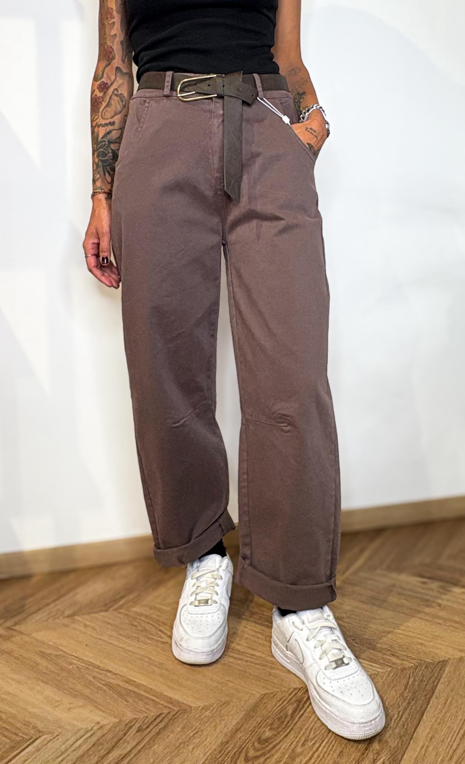 Pantalone Fondente in Cotone con Cintura - Marrone