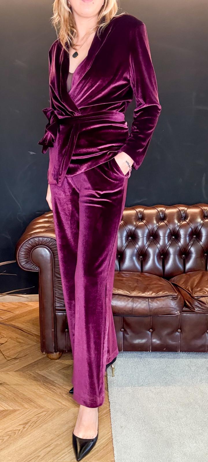 Il pantalone in velluto porpora di B.Limousin è il complemento perfetto per un look elegante, morbido e raffinato.