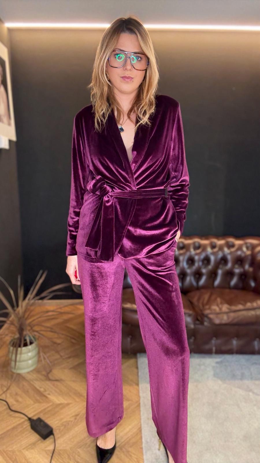 Pantalone in velluto porpora gamba dritta – B.Limousine