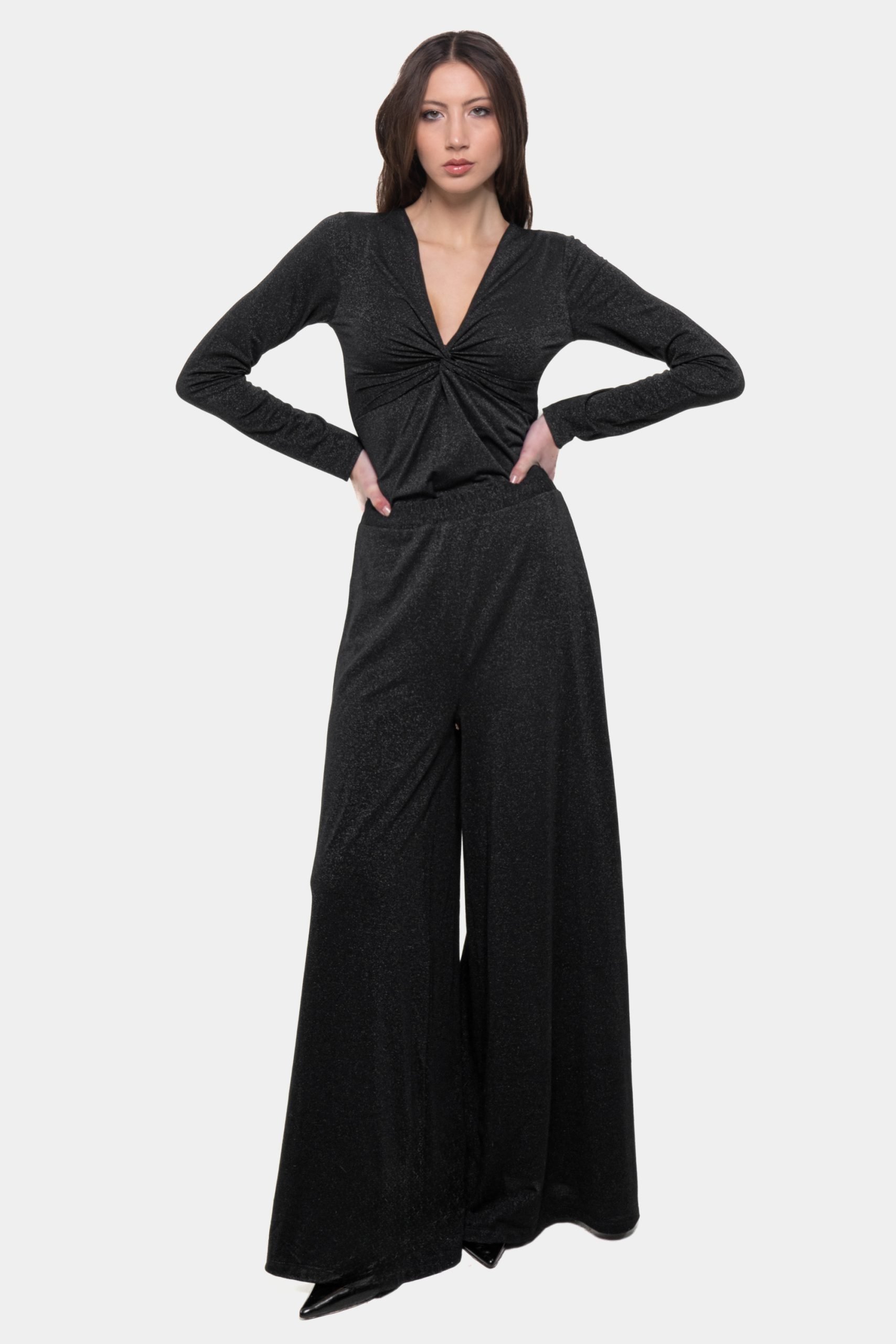 Pantalone Palazzo Lola in jersey lurex Nero