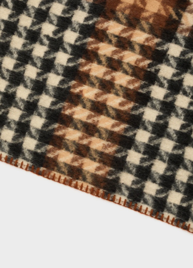 Avvolgente, morbida e caldissima, è realizzata in tessuto soffice con fantasia pied de poule, un classico senza tempo che aggiunge subito carattere e stile.