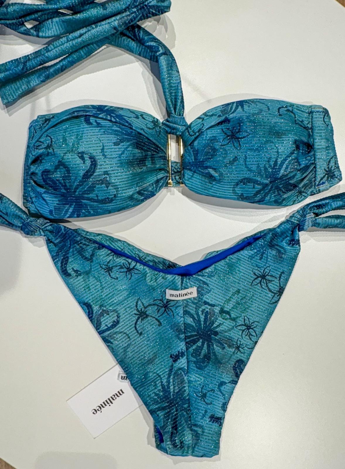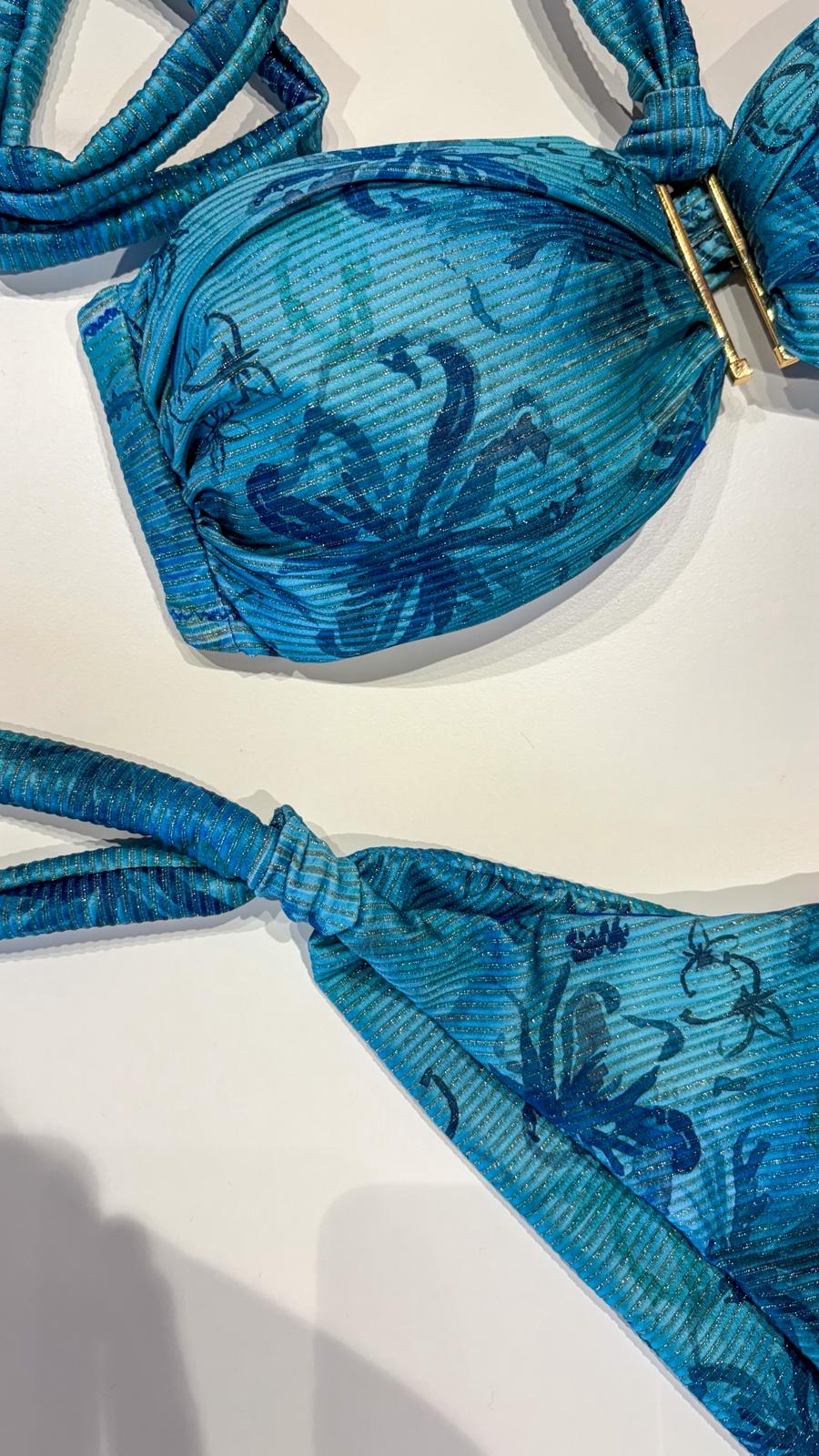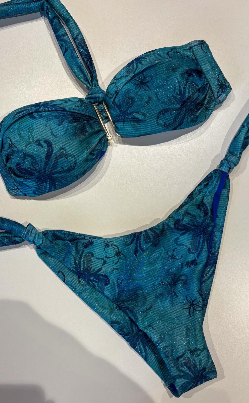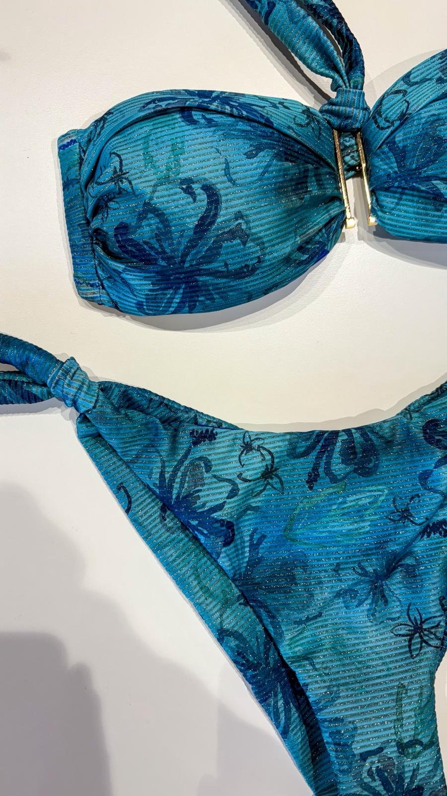 Bikini Matinée Lady – Fantasia Hibiscus Ceruleo | Costume da Bagno Lurex a Fascia
