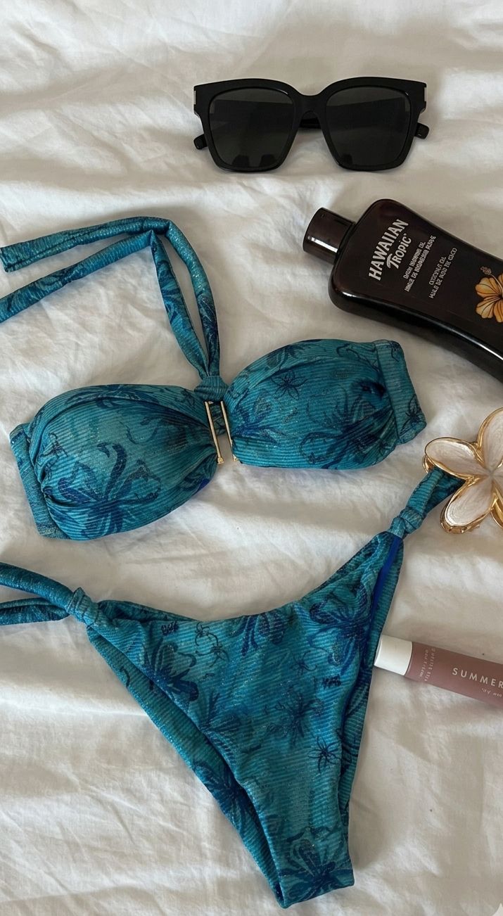 * Il Top: Una fascia strutturata che valorizza il décolleté con un elegante dettaglio centrale dorato, perfetta per un’abbronzatura senza segni ma con il massimo sostegno.