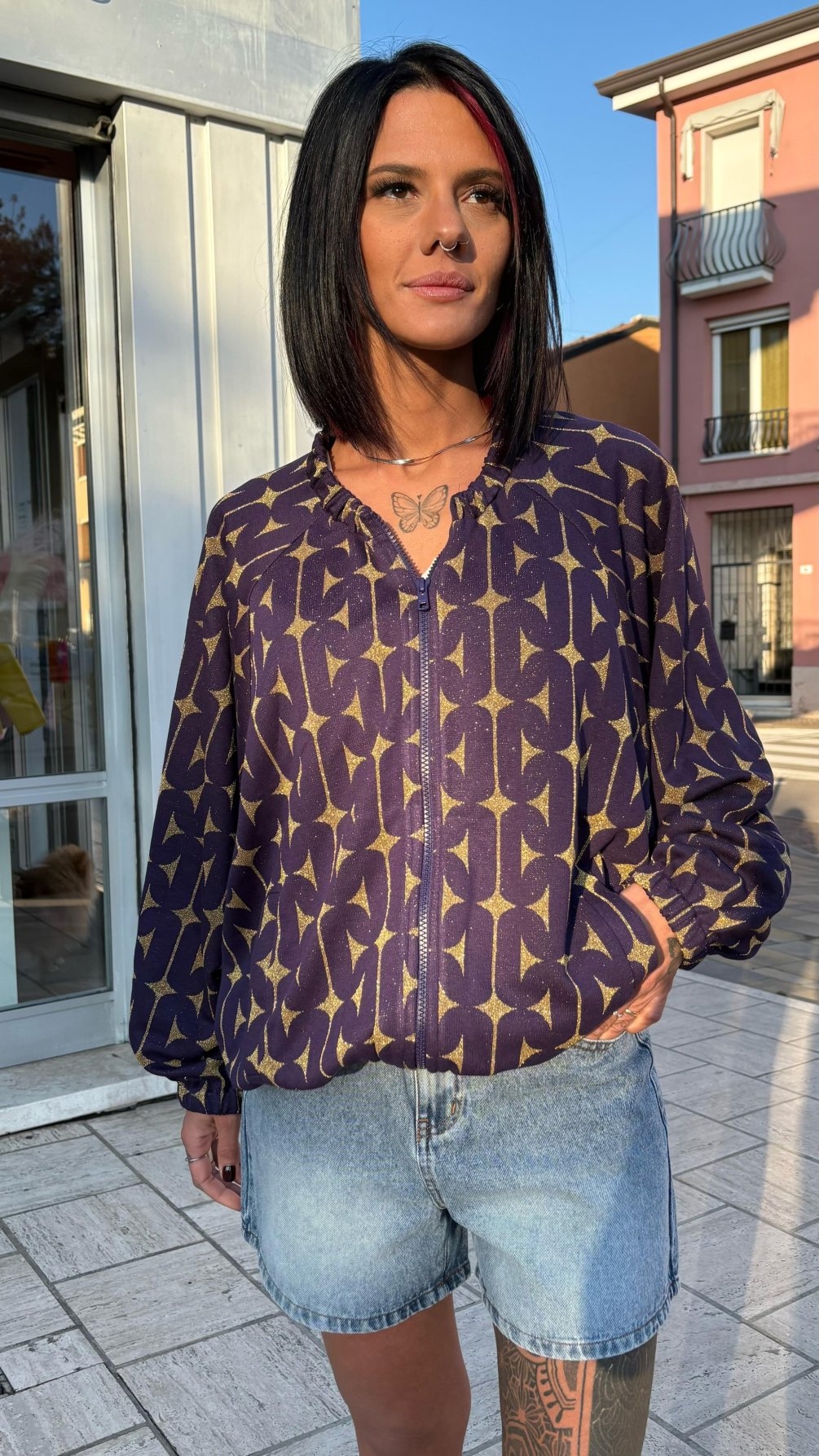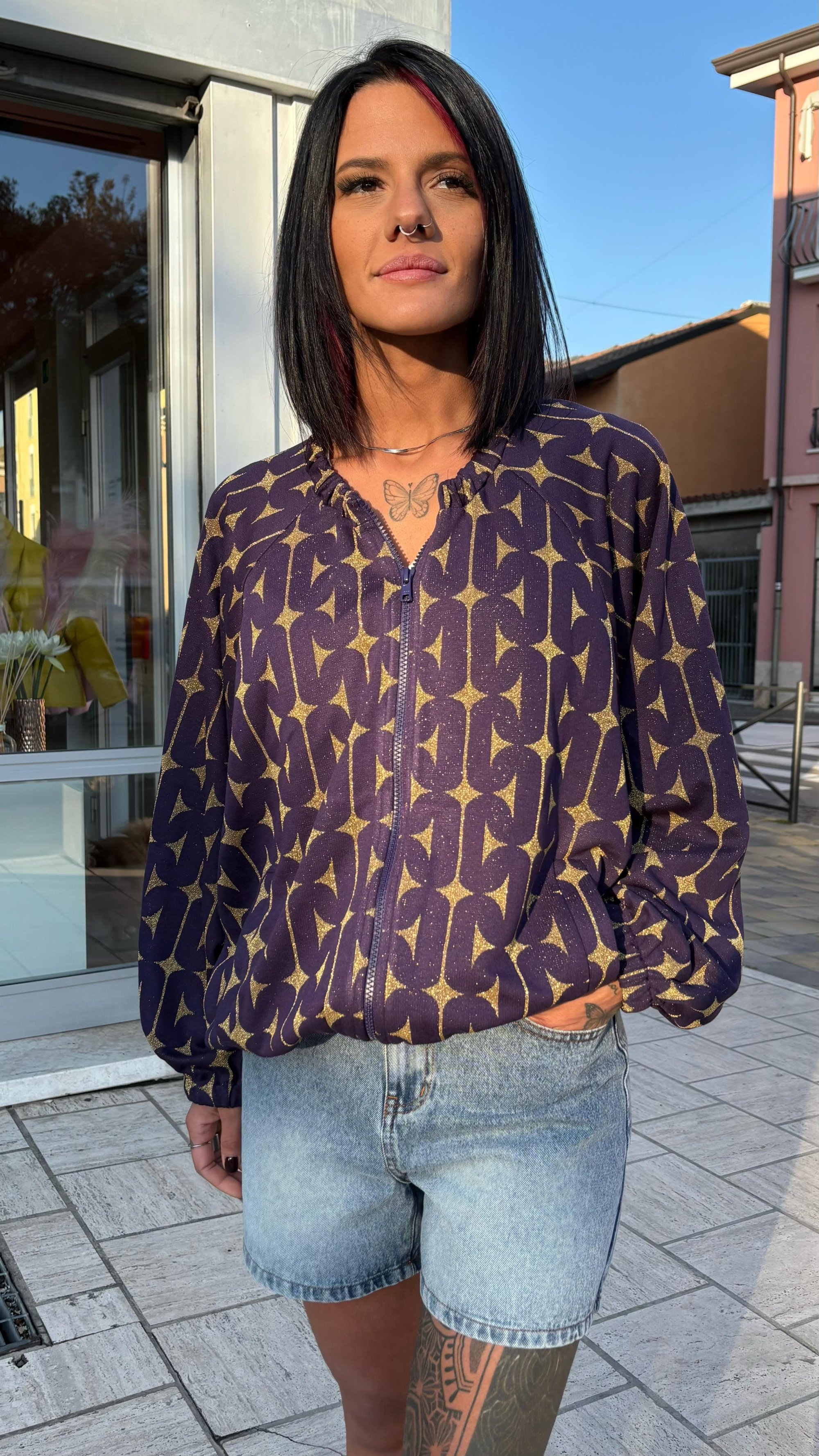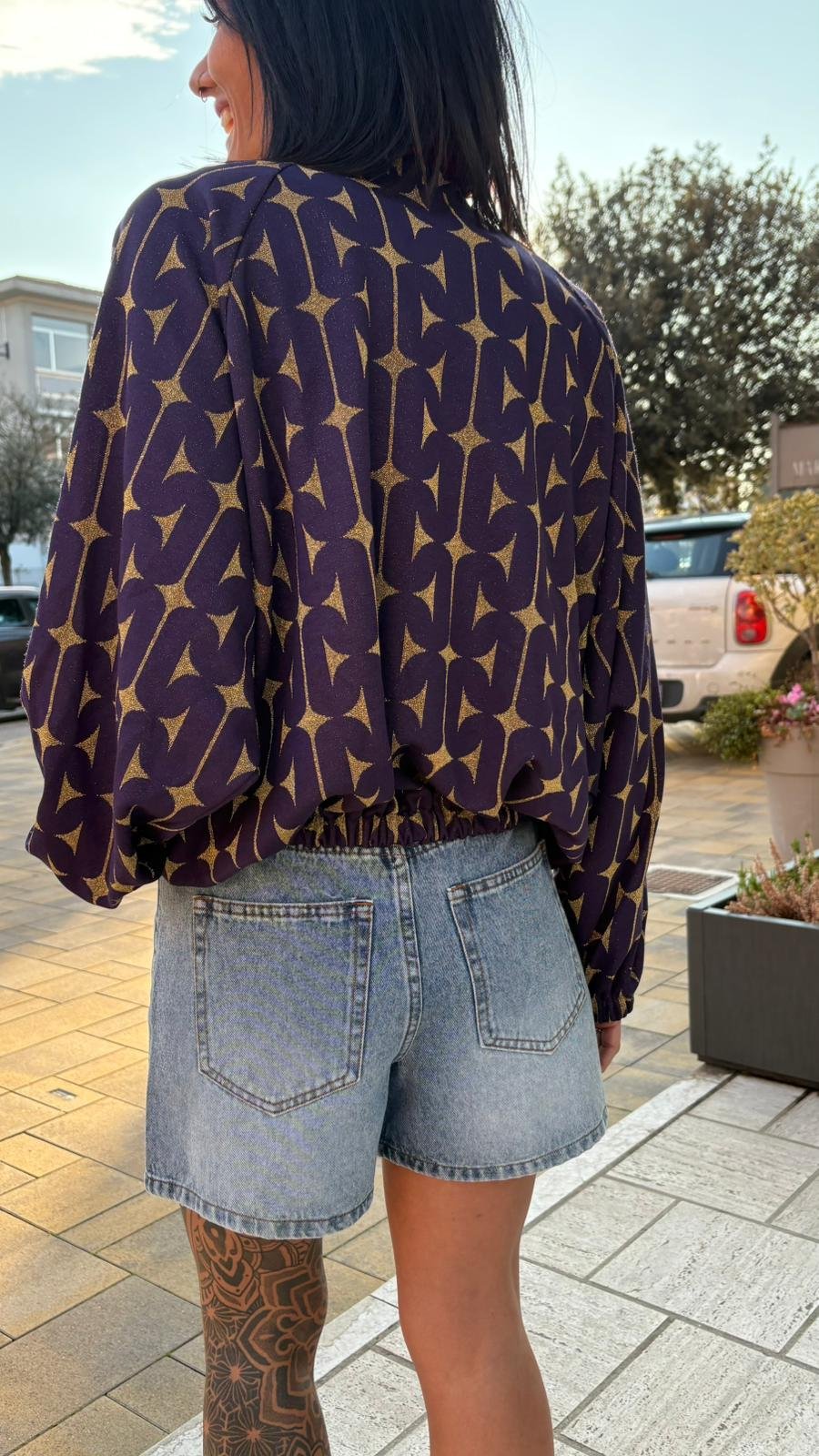 Il bomber CAMERUN unisce linea over, stampa jacquard e anima fashion in un mix contemporaneo e deciso.