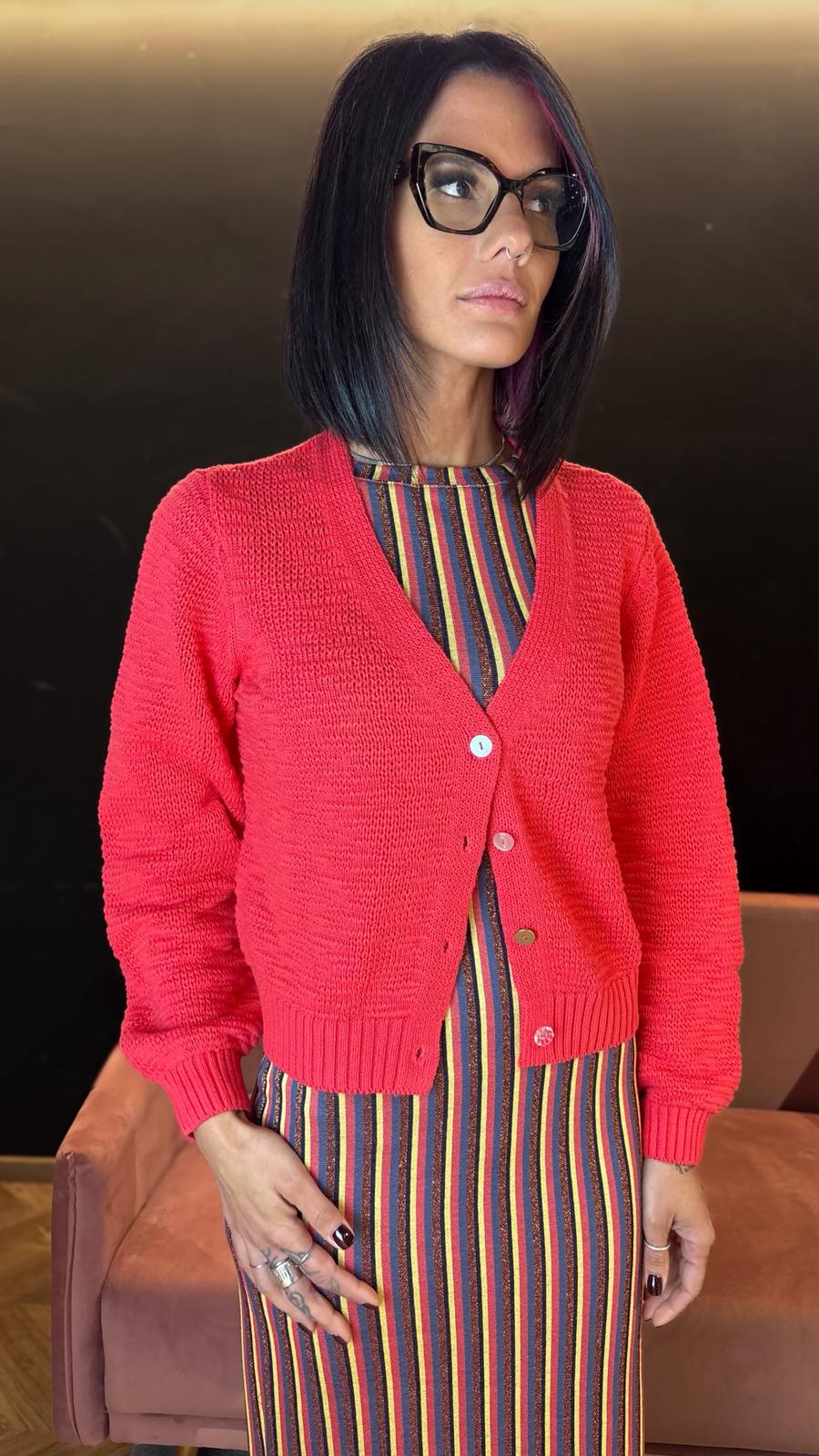 Cardigan Cropped in Cotone con Scollo a V - Geranio