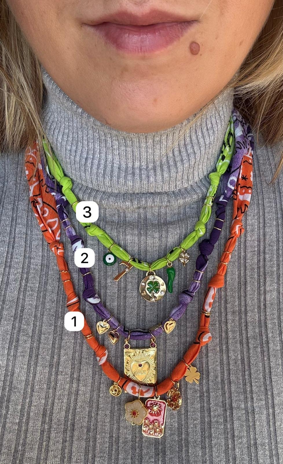 ✨ Bandana verde lime – charms dorati, quadrifoglio e cornetto
