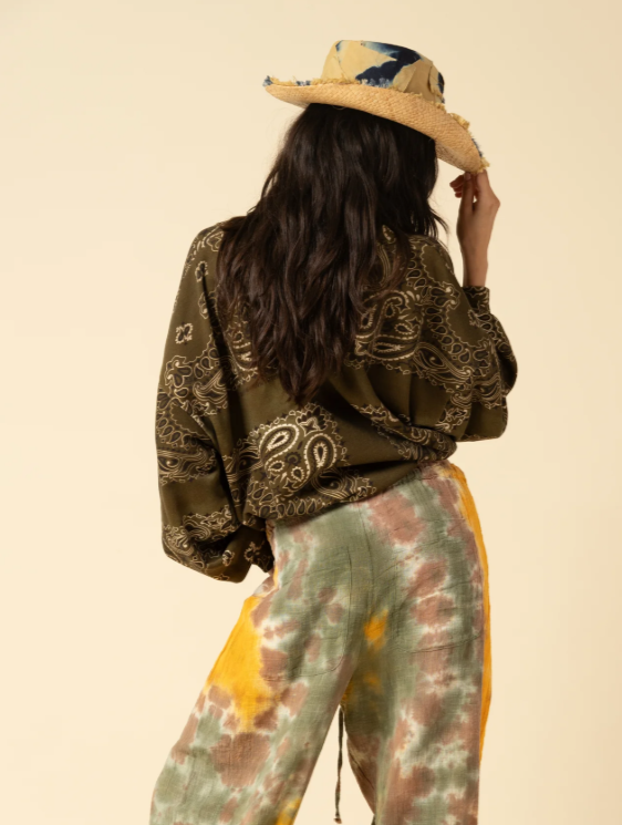 Questa versione oversize in cotone con stampa bandana all-over reinventa un capo casual trasformandolo in un pezzo di carattere.