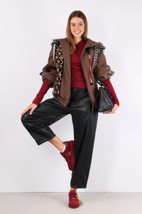 Non la chiameremmo nemmeno felpa: è un vero capospalla boho chic, ricco di dettagli e pensato per trasformare anche il look più semplice.