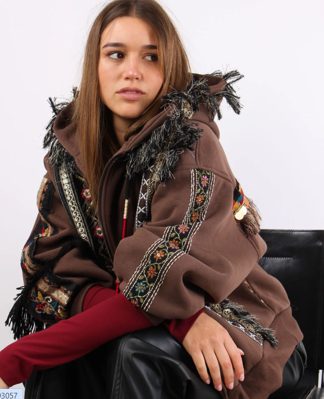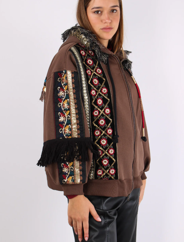 Felpa ricamata con frange – Capospalla Boho Chic