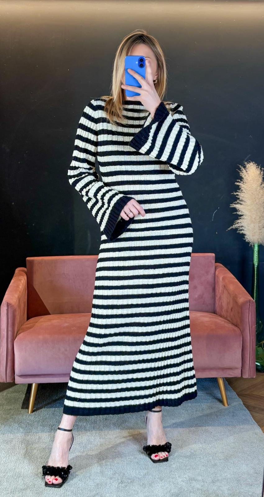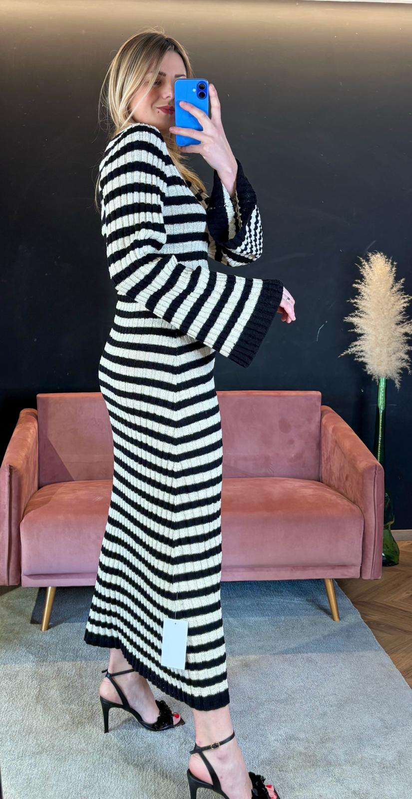 Abito Althea Righe Panna e Nero in Maglia Bouclé