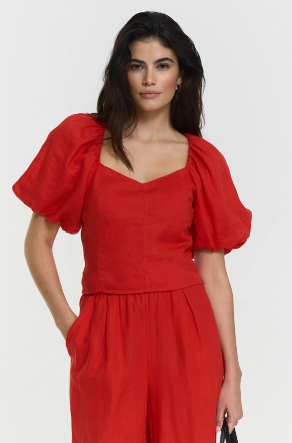 L’Audrina Linen Top di Twist & Tango nella tonalità red è un top in puro lino che dona carattere e femminilità al look estivo. Realizzato in lino a fibra lunga, garantisce freschezza e leggerezza mantenendo una struttura morbida ma definita.