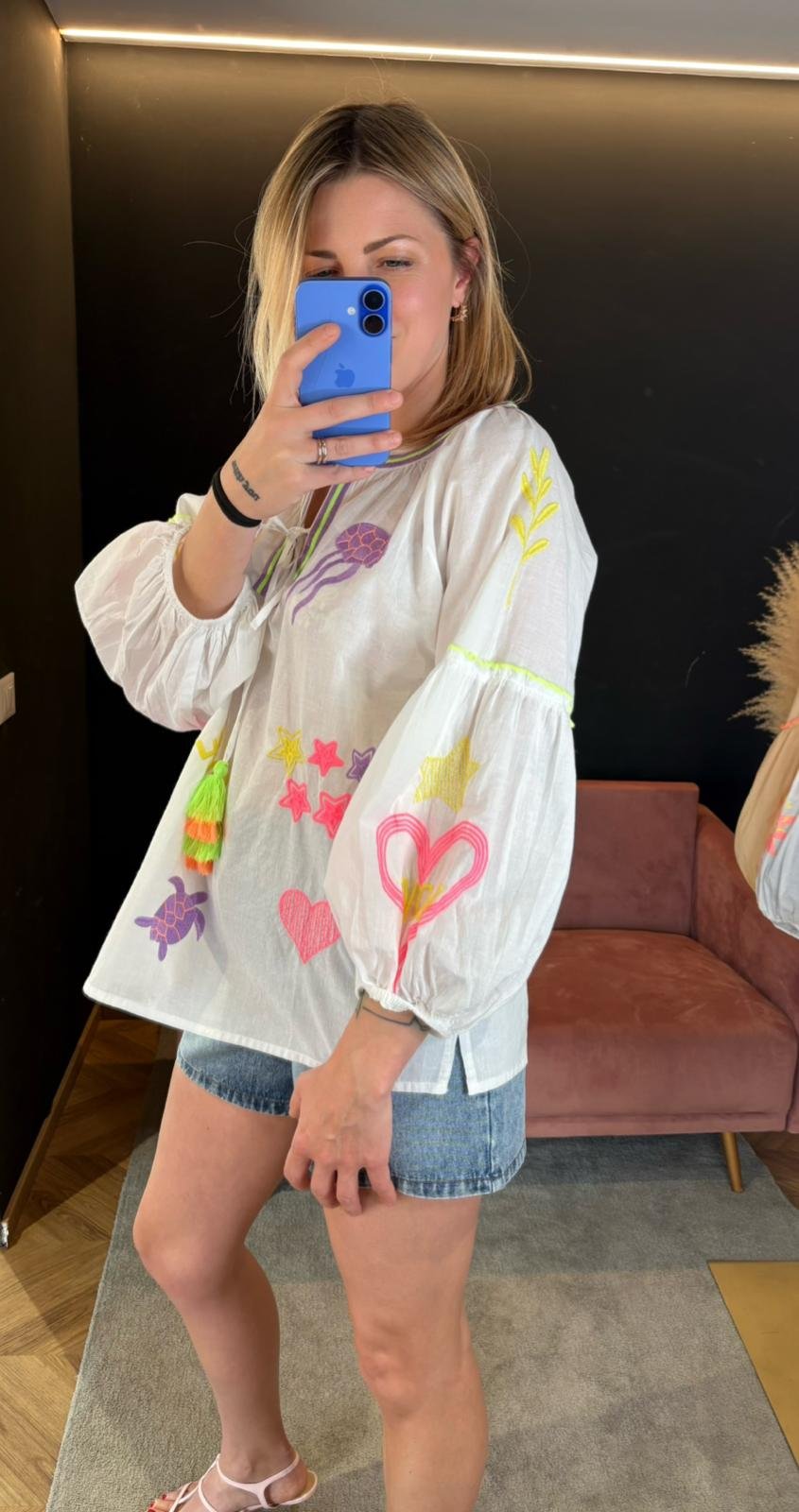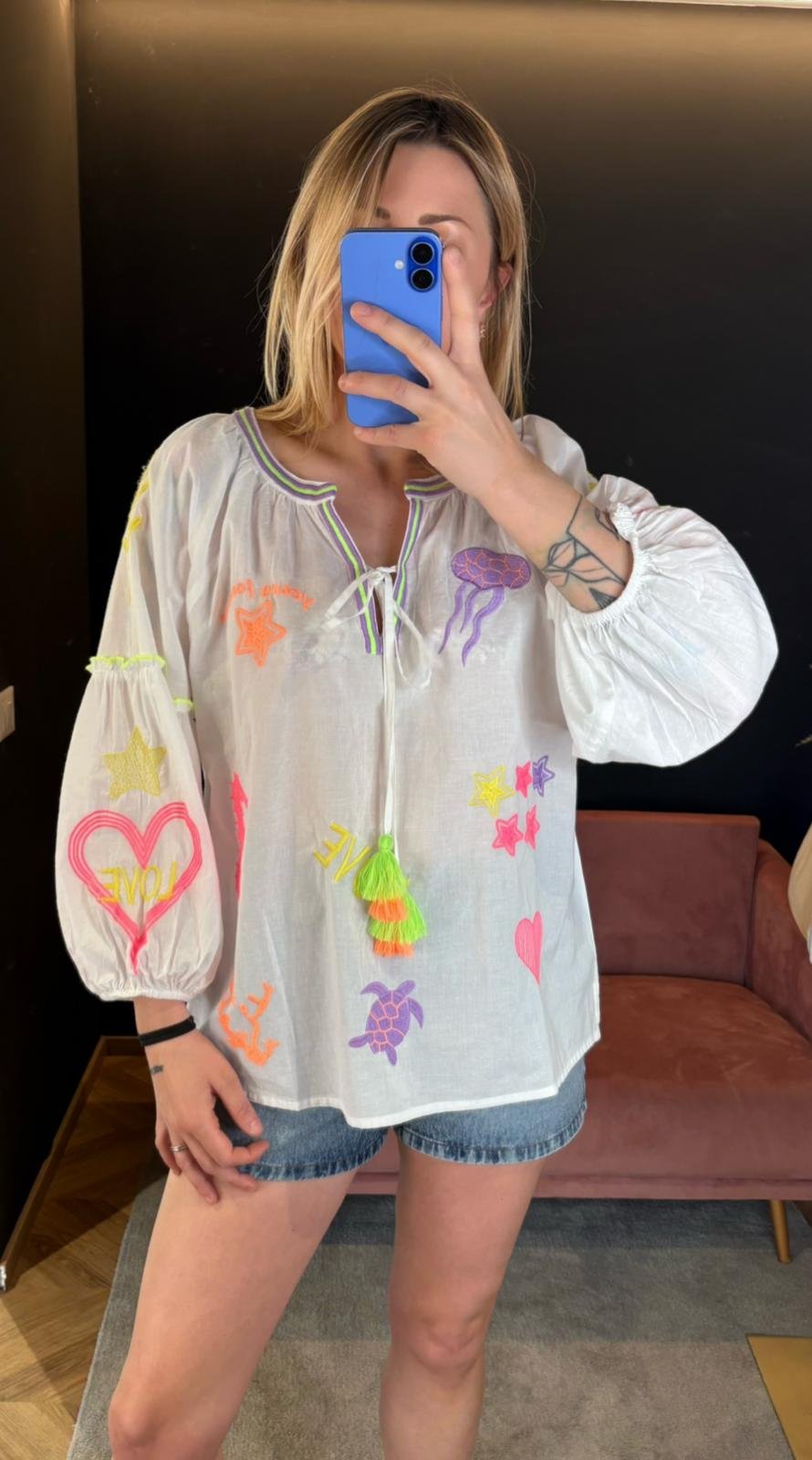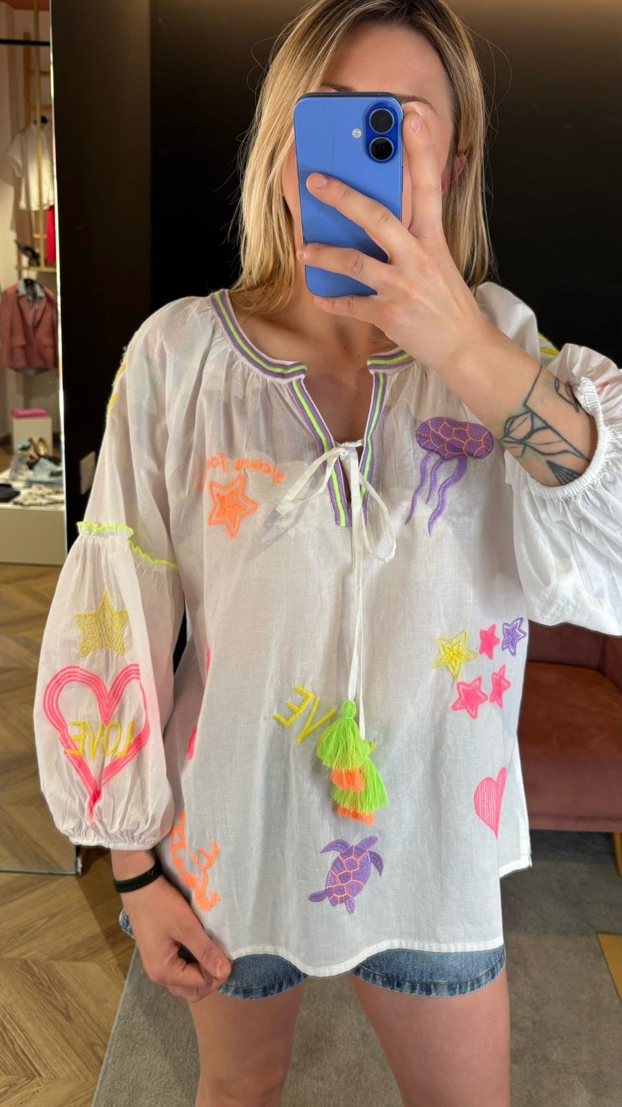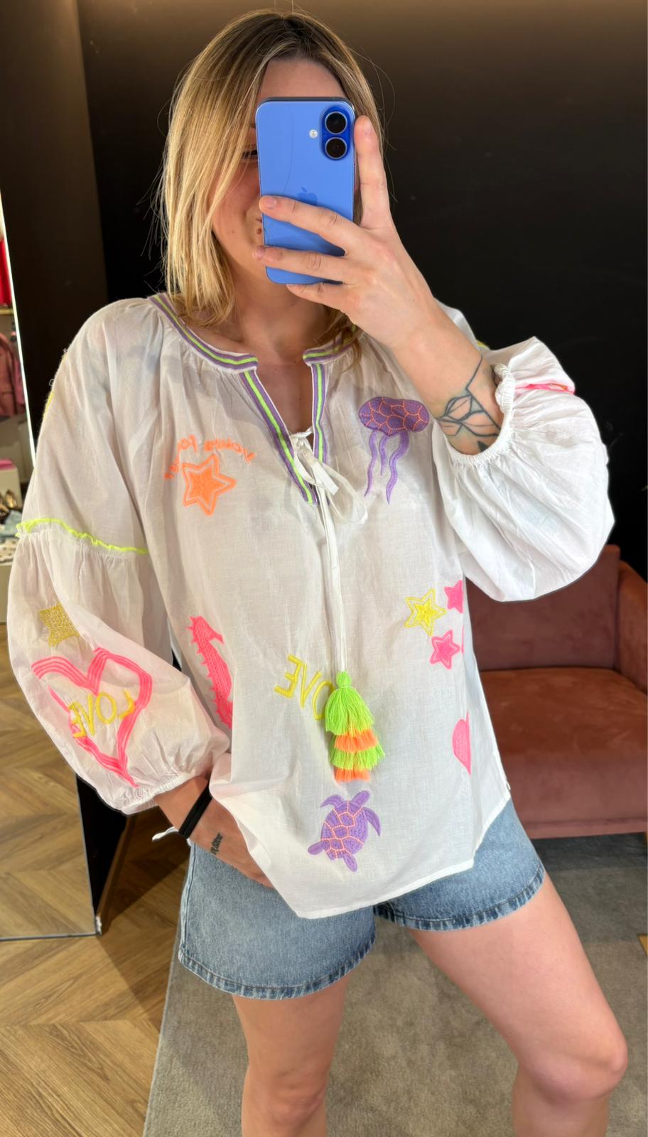 Blusa Ocean Ricamata Multicolor – Tartaruga