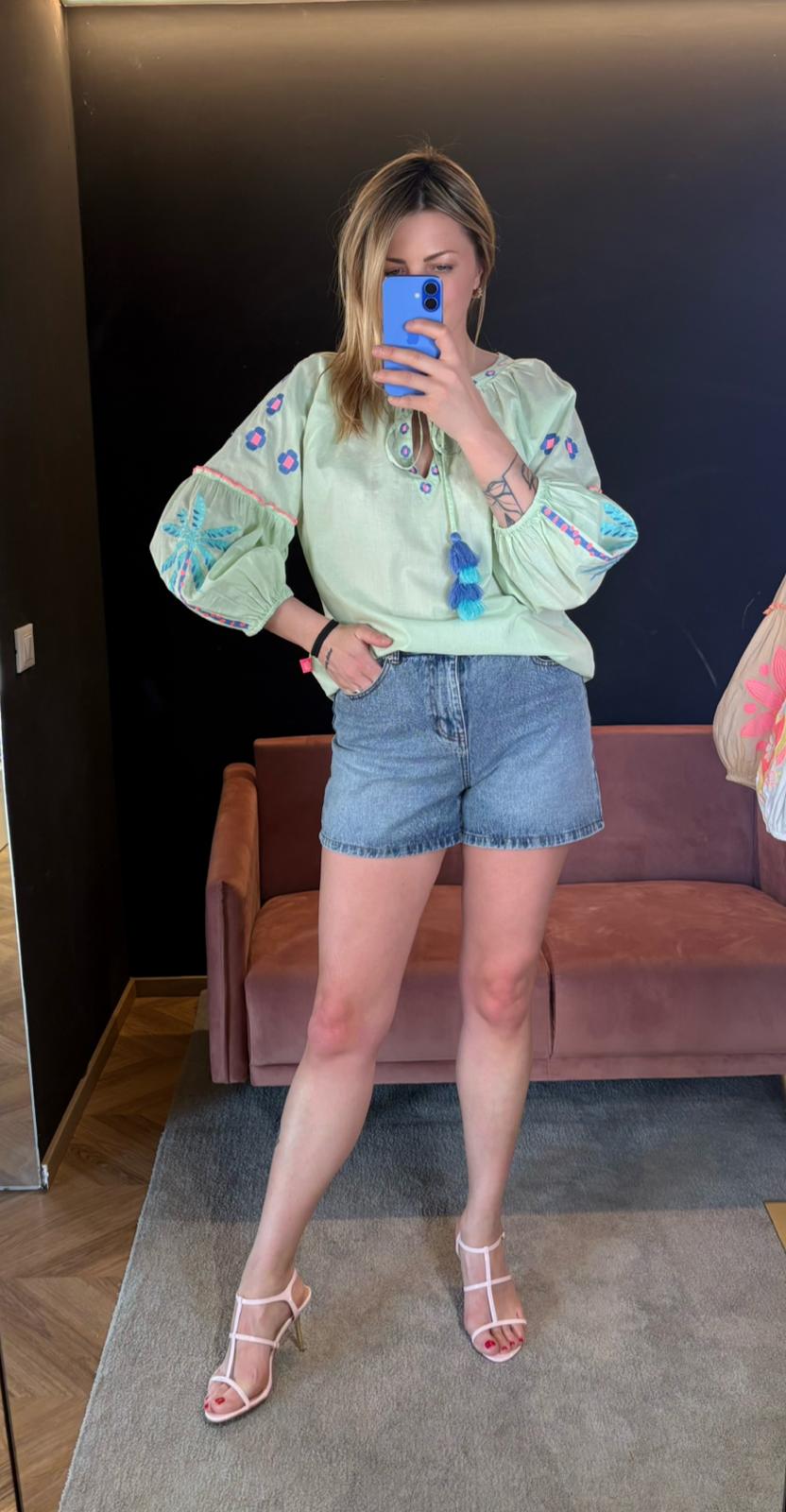 Blusa Palm Ricamata Verde – Tartaruga -  S
