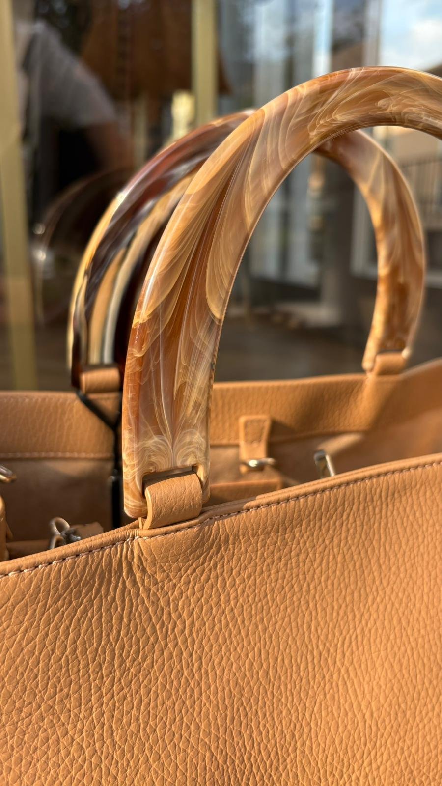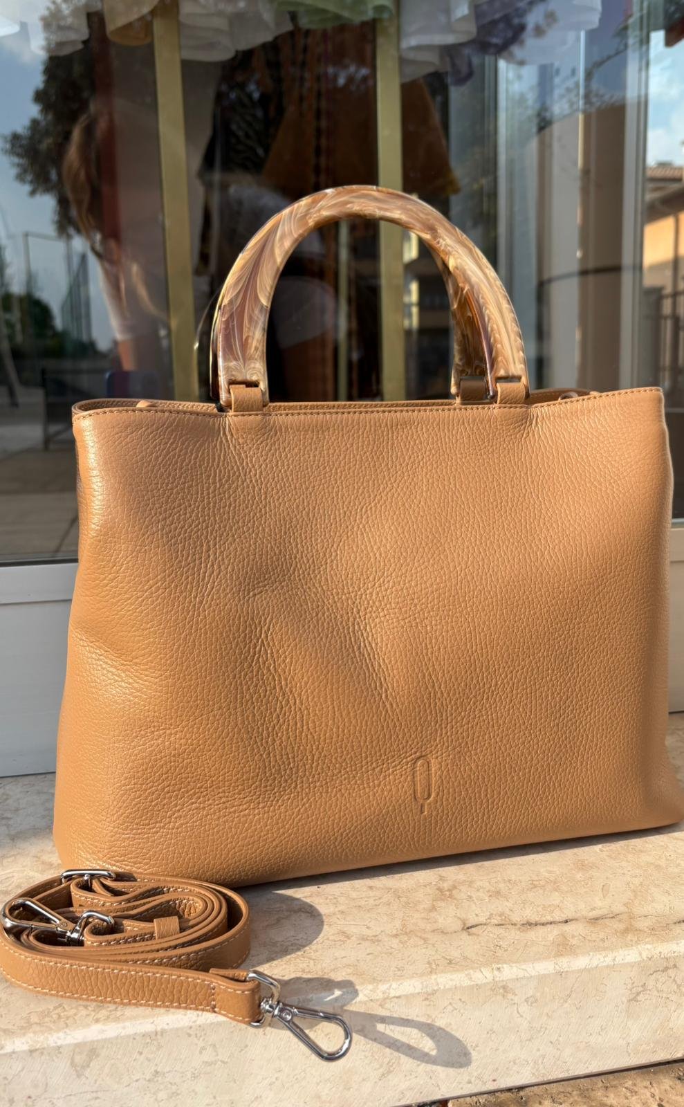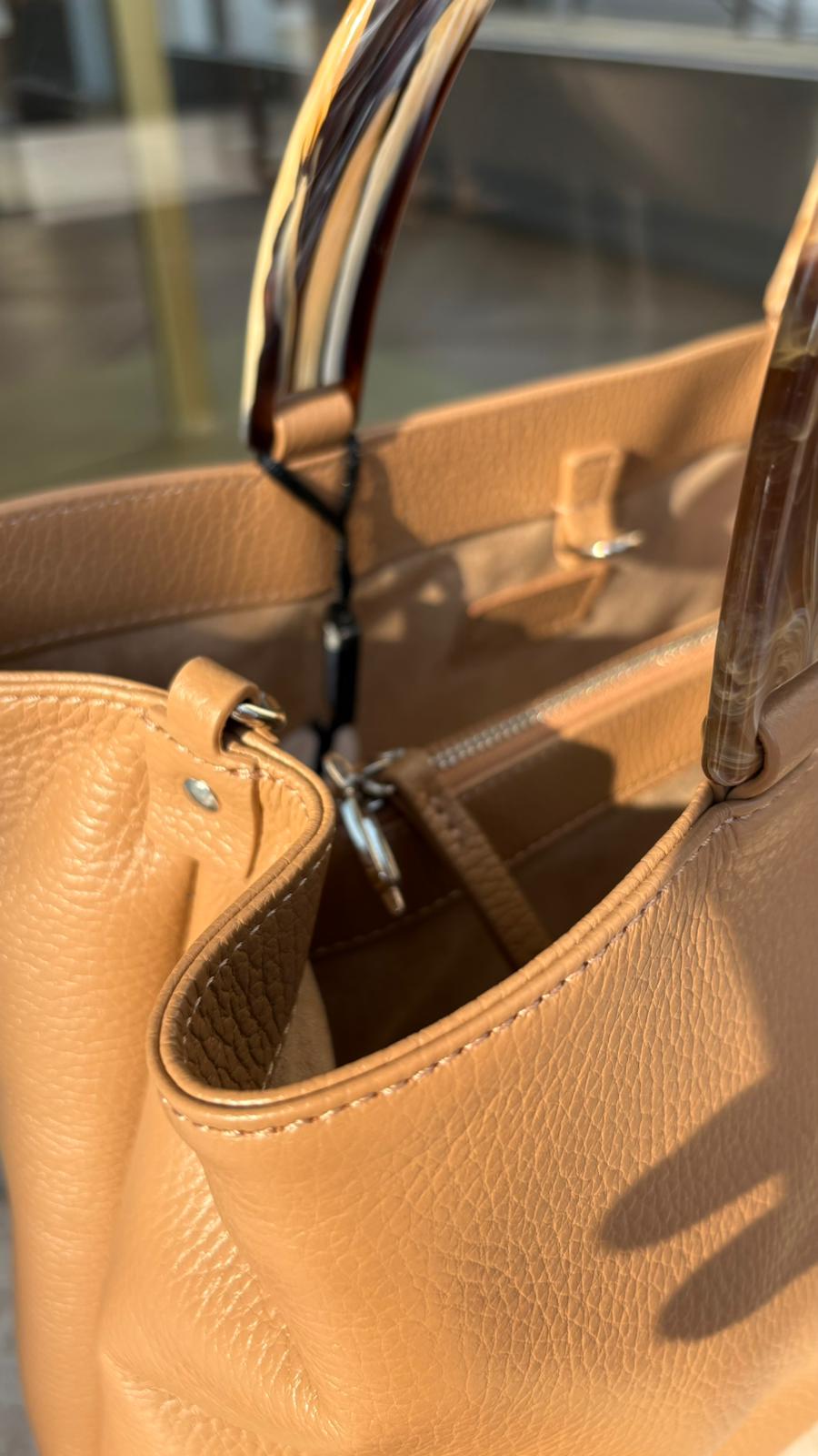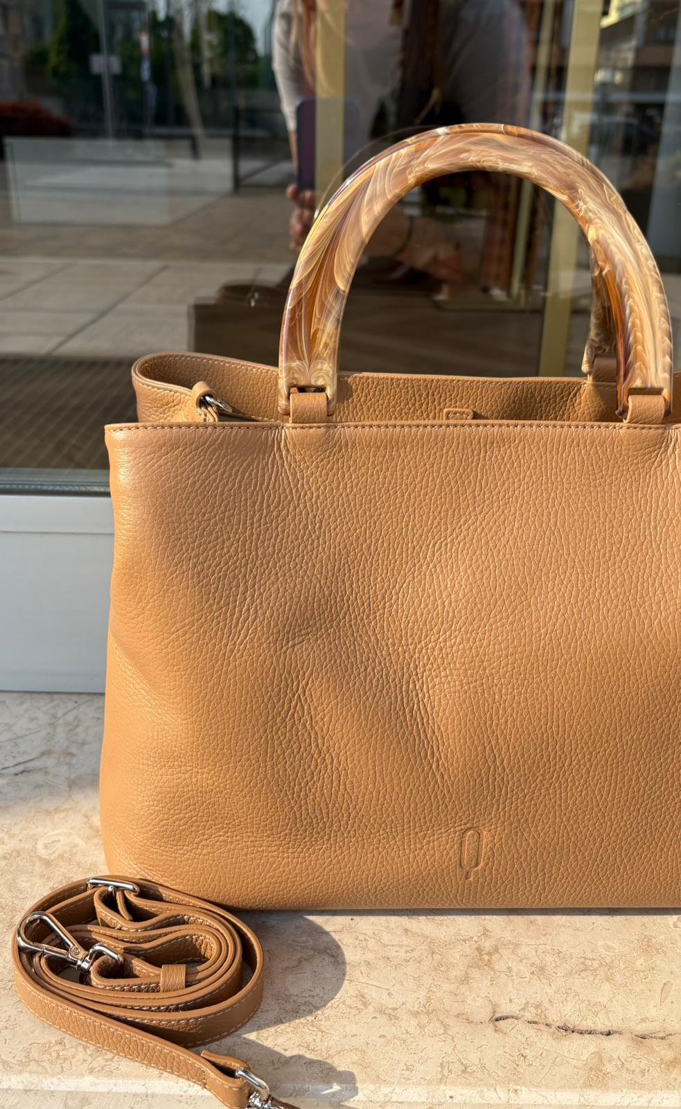 Borsa in Vera Pelle Cuoio con Manico Rigido Effetto Resina – Made in Italy