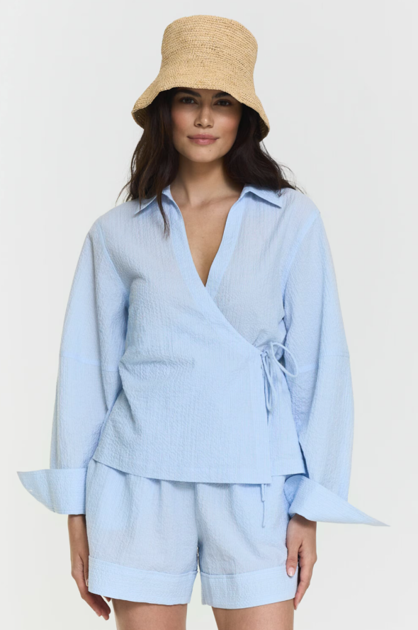 La Mella Wrap Shirt di Twist & Tango è una camicia in cotone stretch pensata per valorizzare la silhouette con eleganza discreta. Realizzata in 99% cotone e 1% spandex, unisce la naturalezza del tessuto alla leggerezza dell’elasticità, garantendo comfort e vestibilità impeccabile.