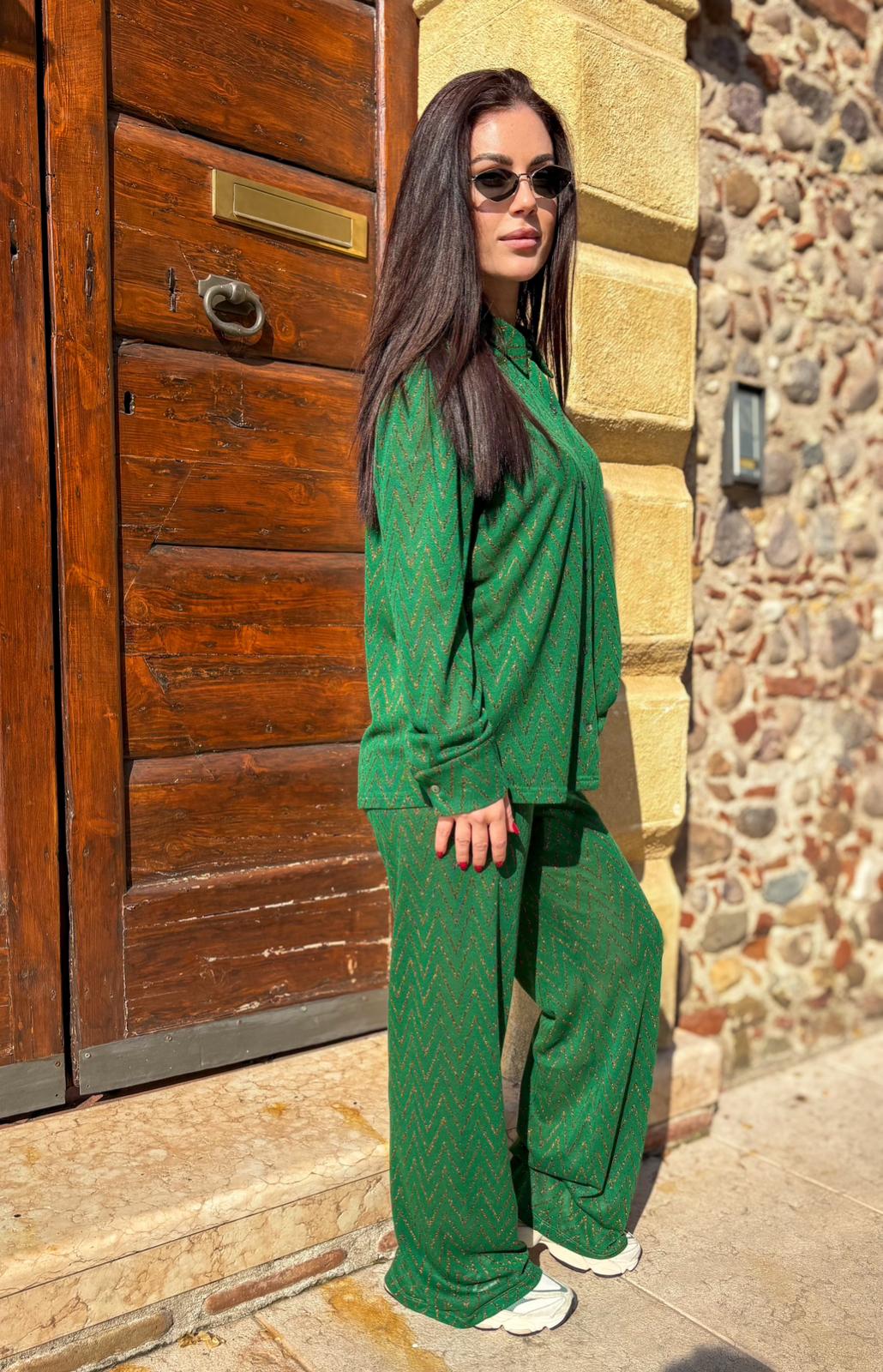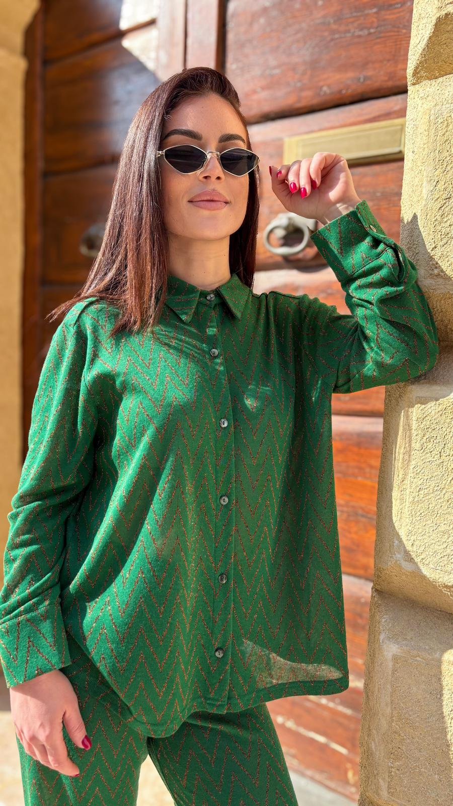 Camicia Milos verde con zig zag in lurex rame – Luce Studio