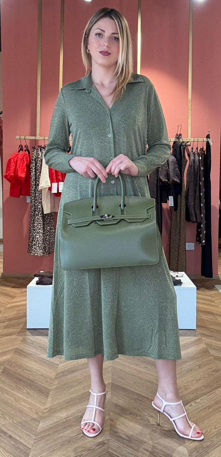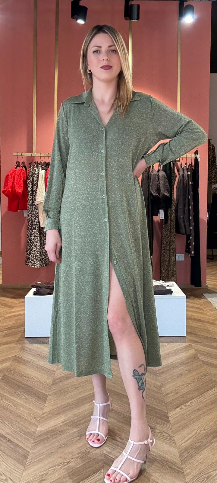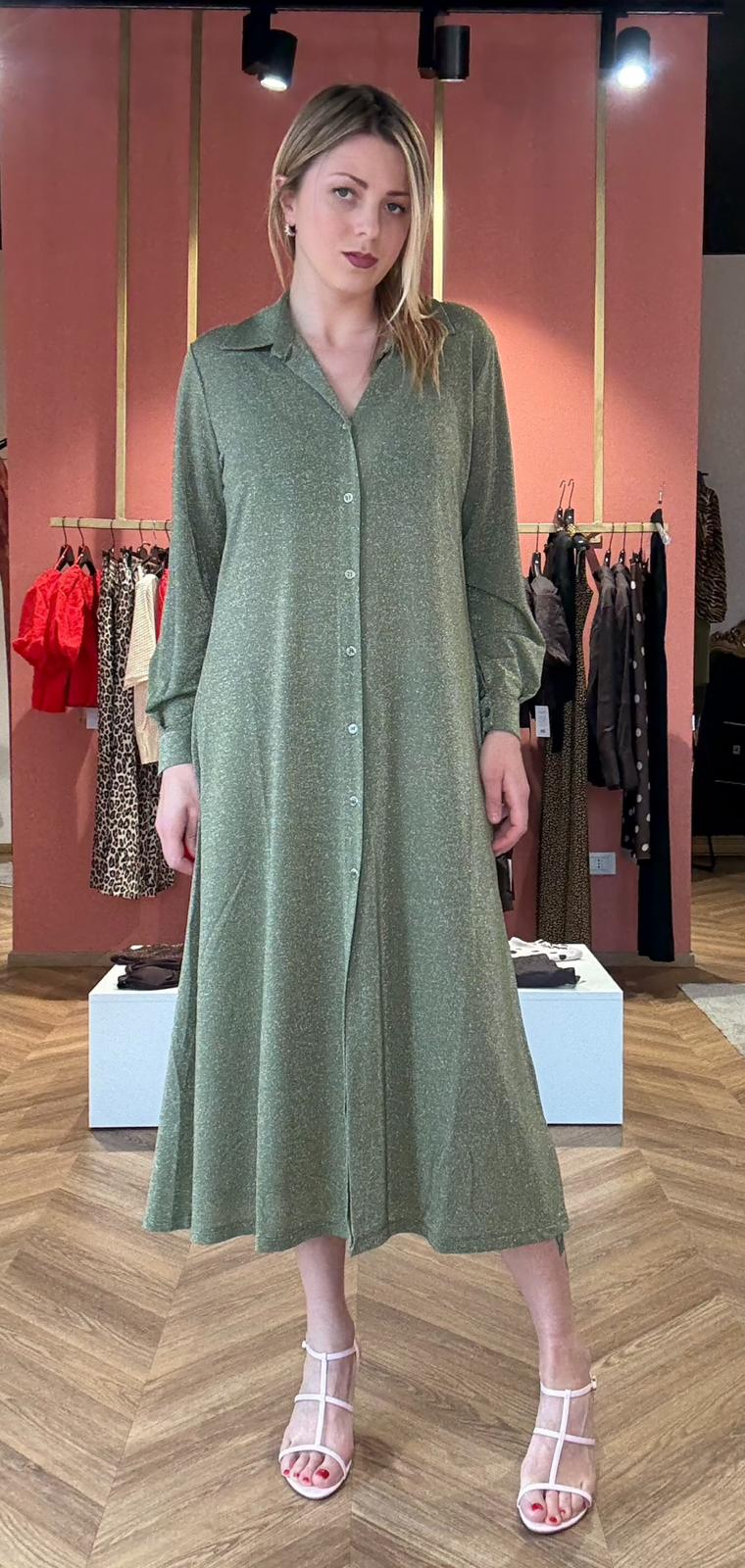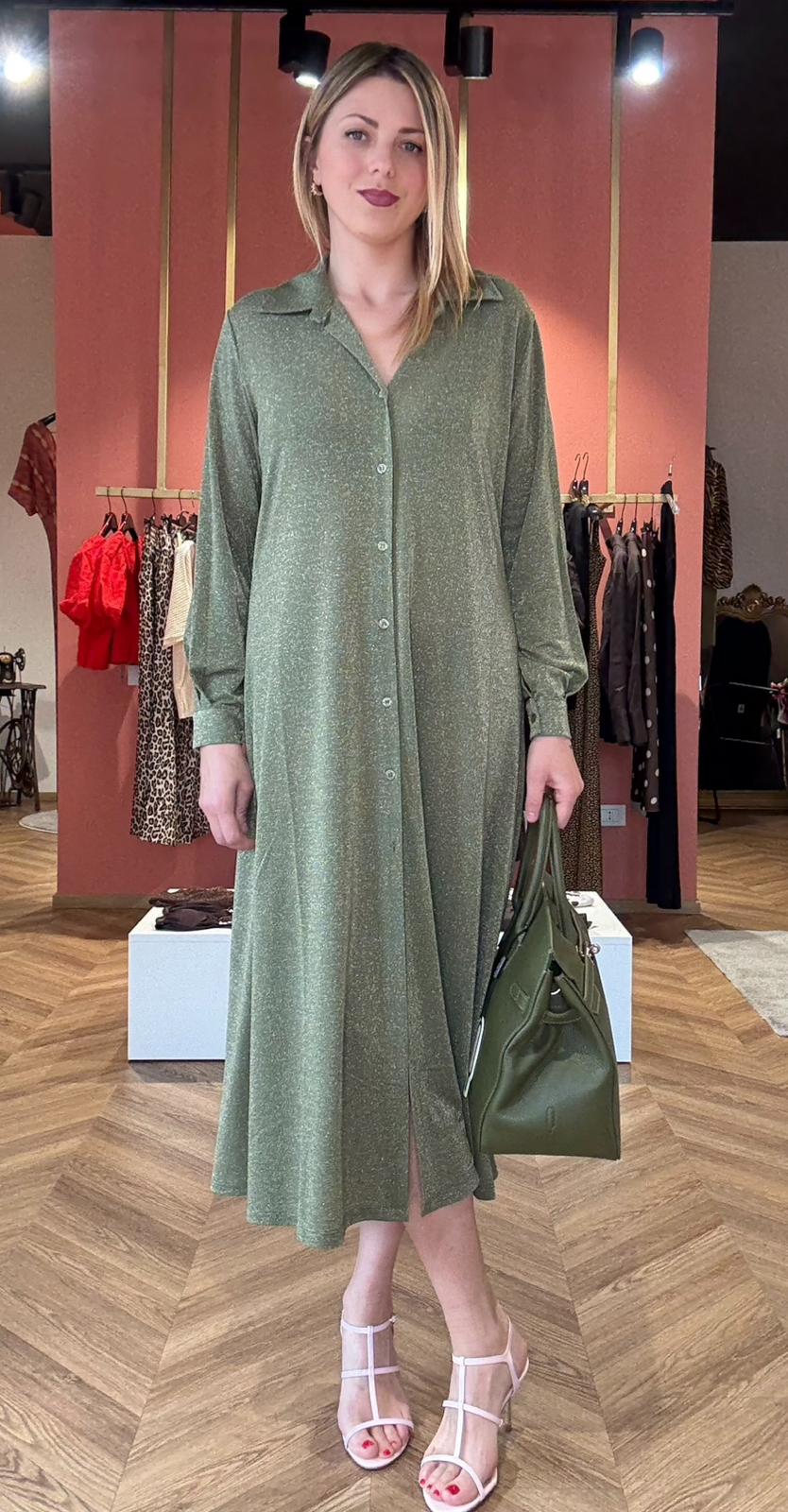 Chemisier Livio verde lurex – abito camicia Made in Italy