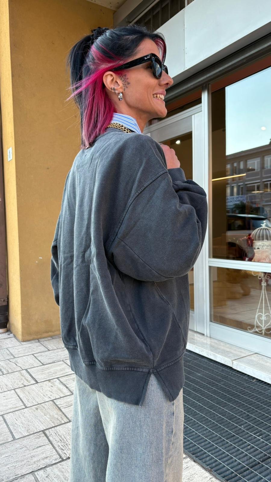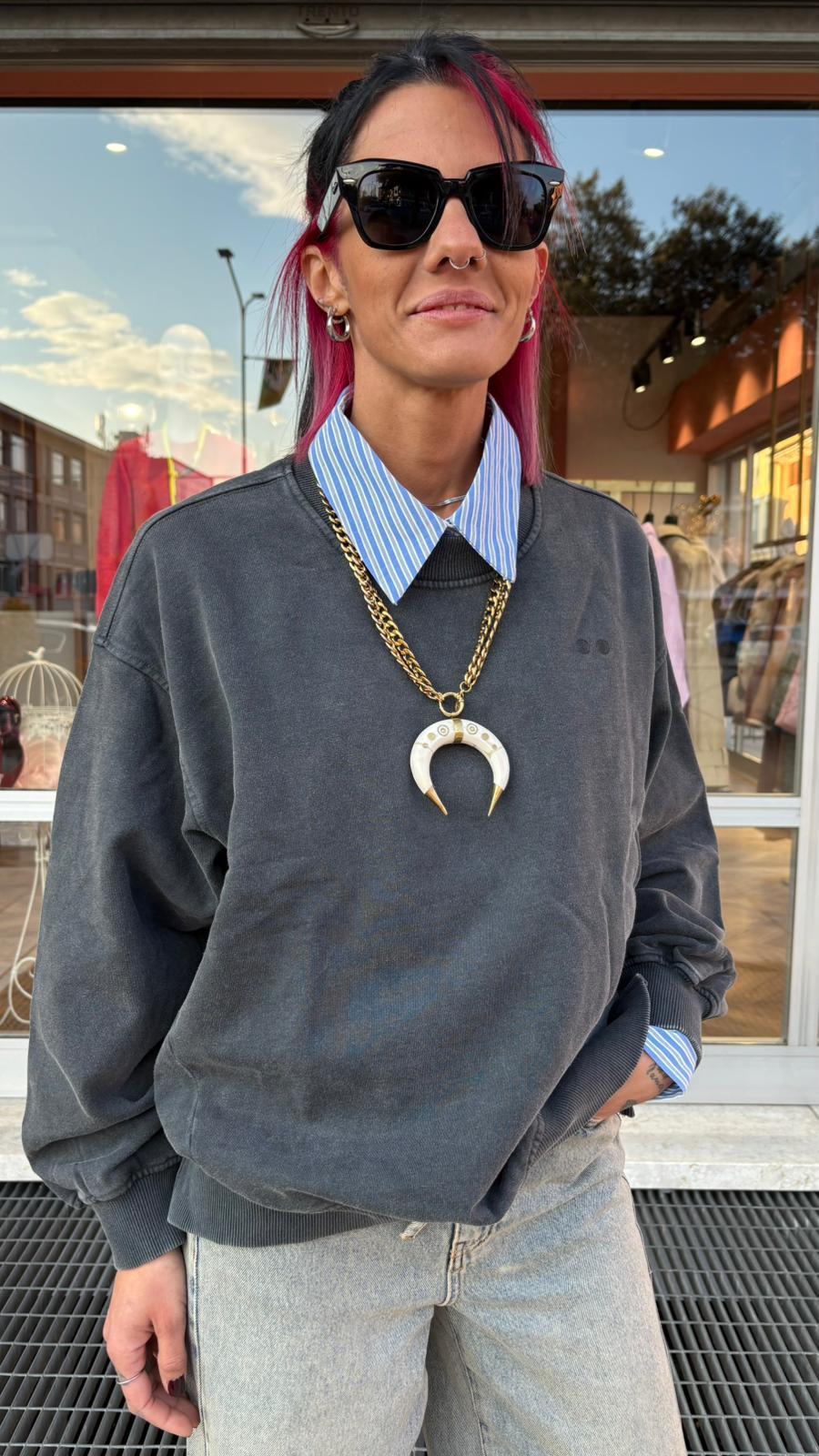 Felpa Oversize Grigio Vintage – Nümph