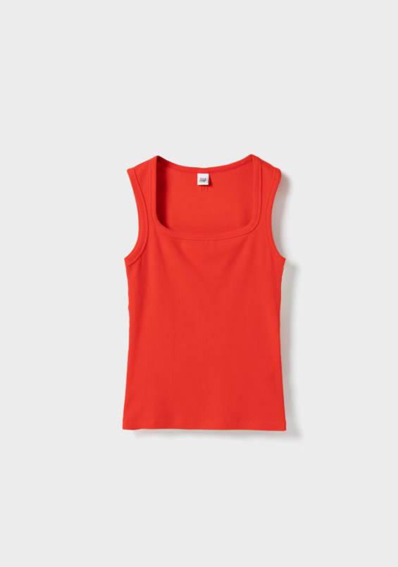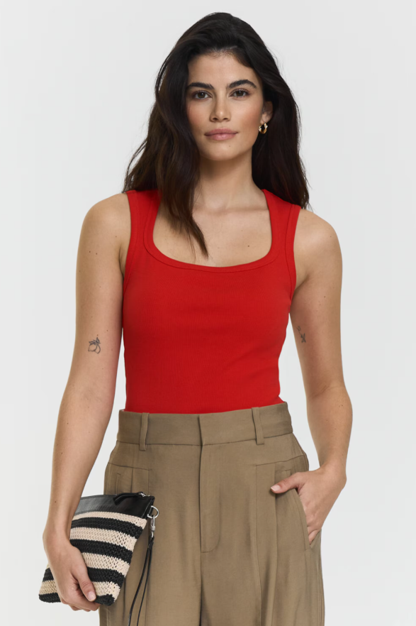Il rosso intenso illumina l’incarnato e trasforma anche il look più semplice in una scelta decisa e contemporanea. Perfetta sotto un blazer, con un pantalone sartoriale o abbinata a uno short per un outfit più rilassato.