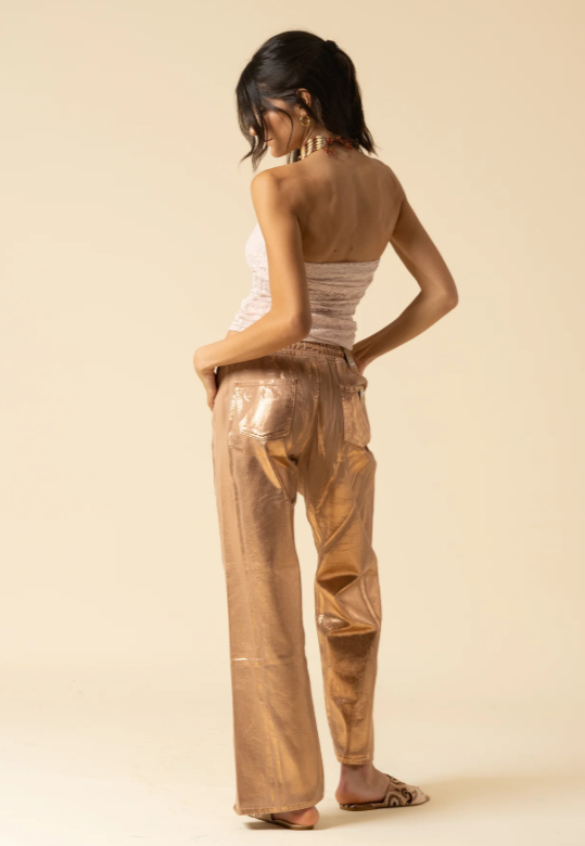 Jeans Laminato Bronzo con Spacchi