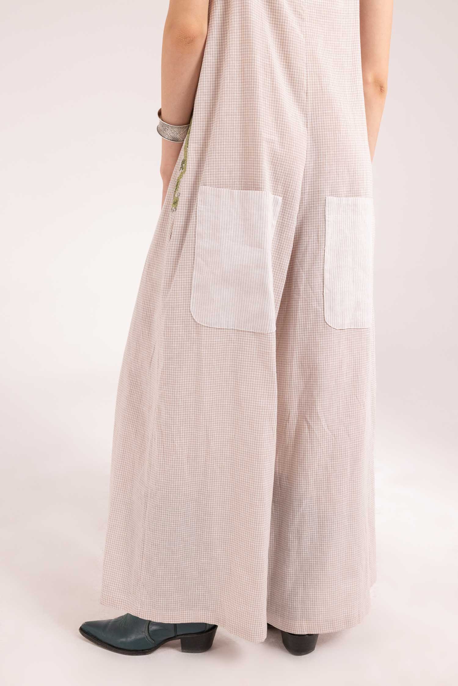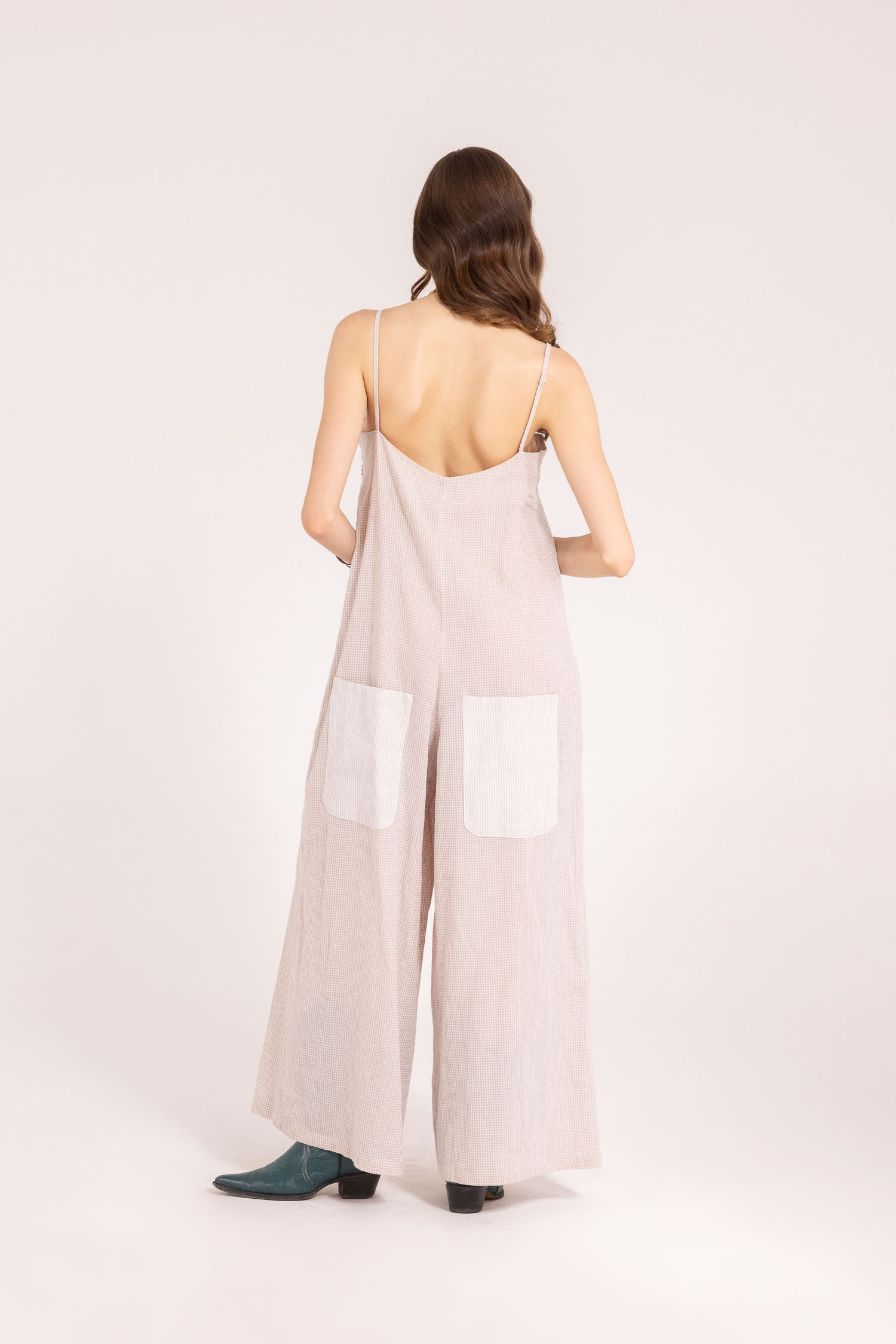 Il vero valore della jumpsuit risiede nei contrasti materici e decorativi: