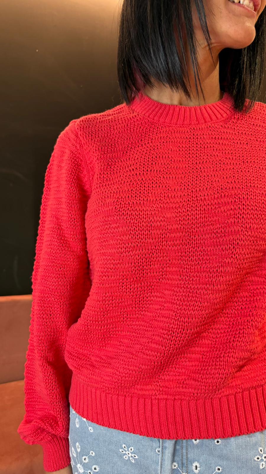 Il maglione firmato Nümph conquista al primo sguardo grazie al suo intenso color geraneo, una tonalità vivace e luminosa che accende l’incarnato e dona carattere anche agli abbinamenti più semplici.