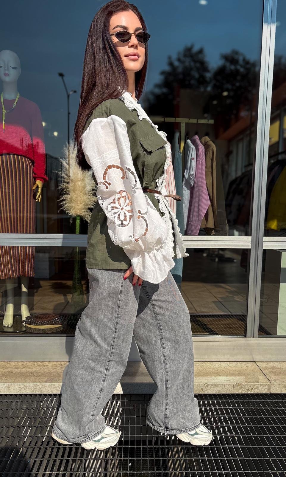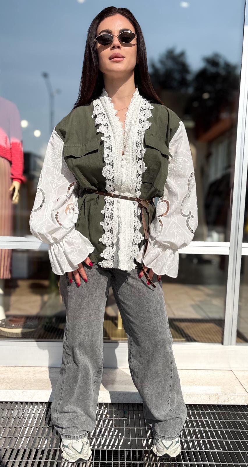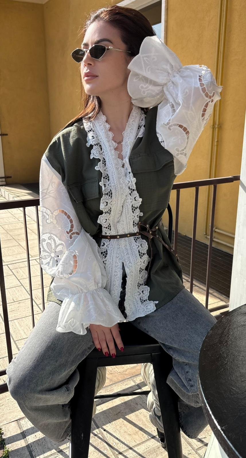 Military Jacket con Pizzo e Maniche in Sangallo – Front Street