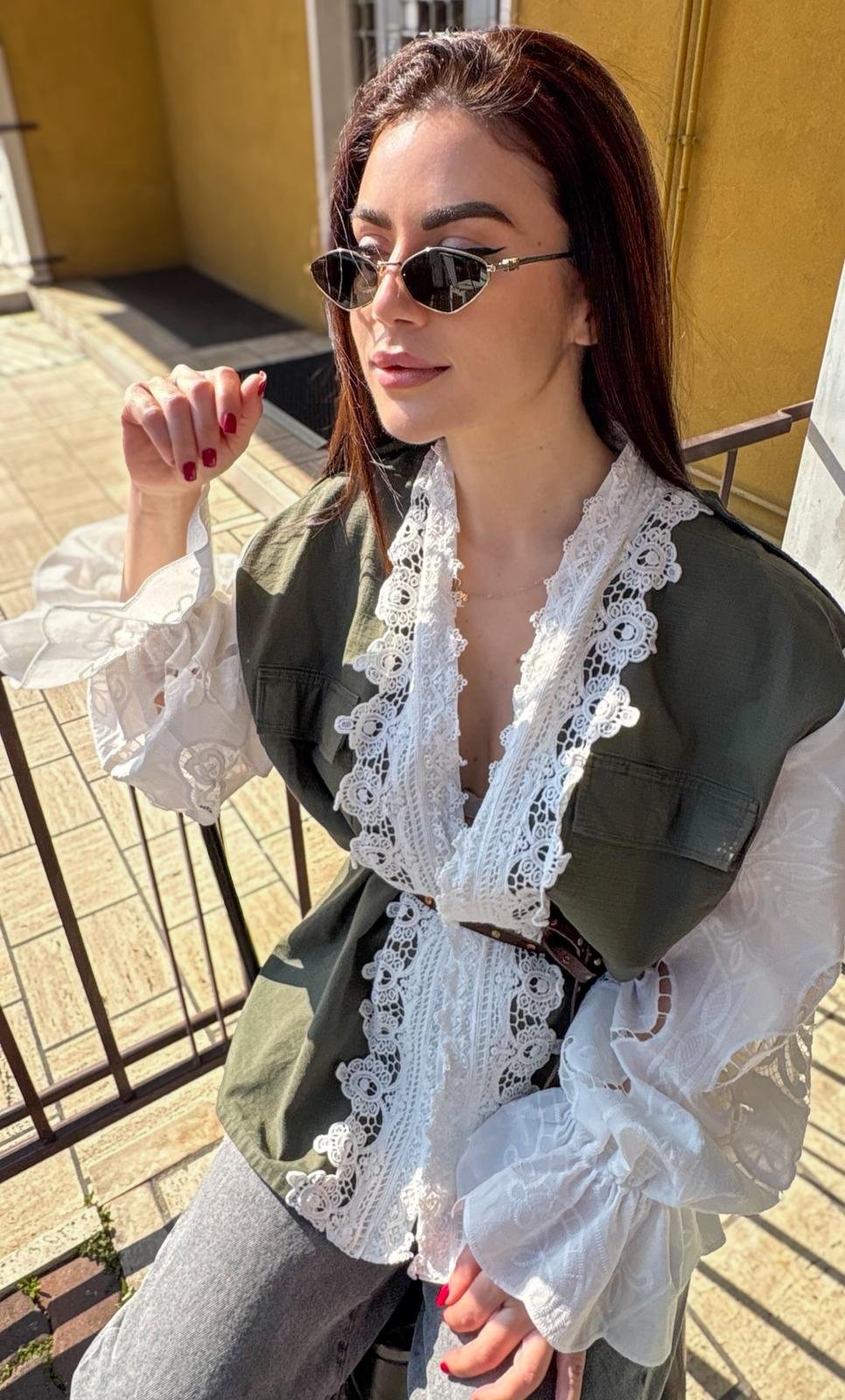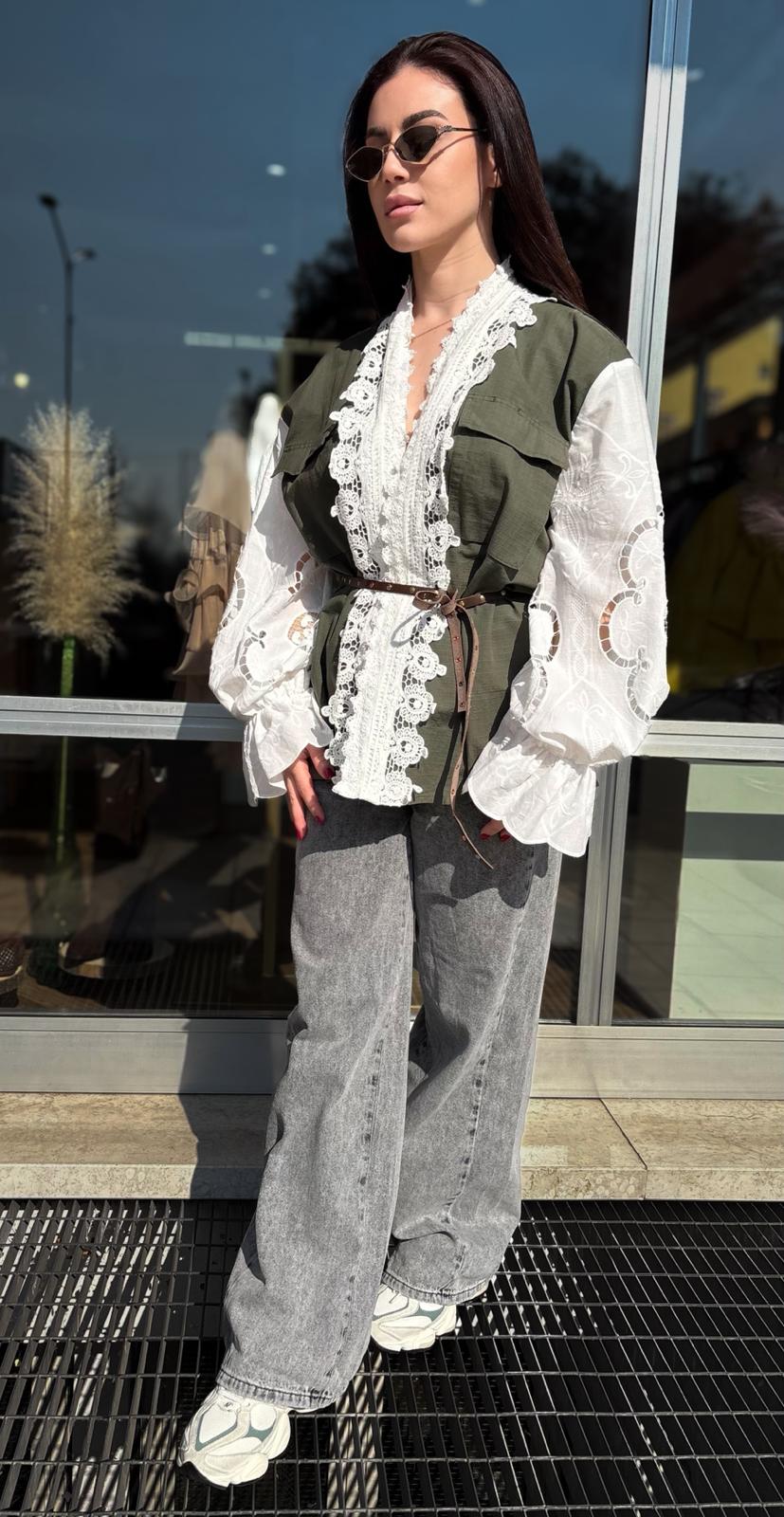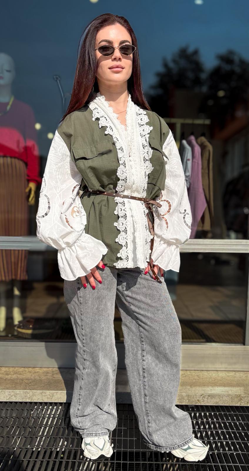 Military Jacket con Pizzo e Maniche in Sangallo – Front Street
