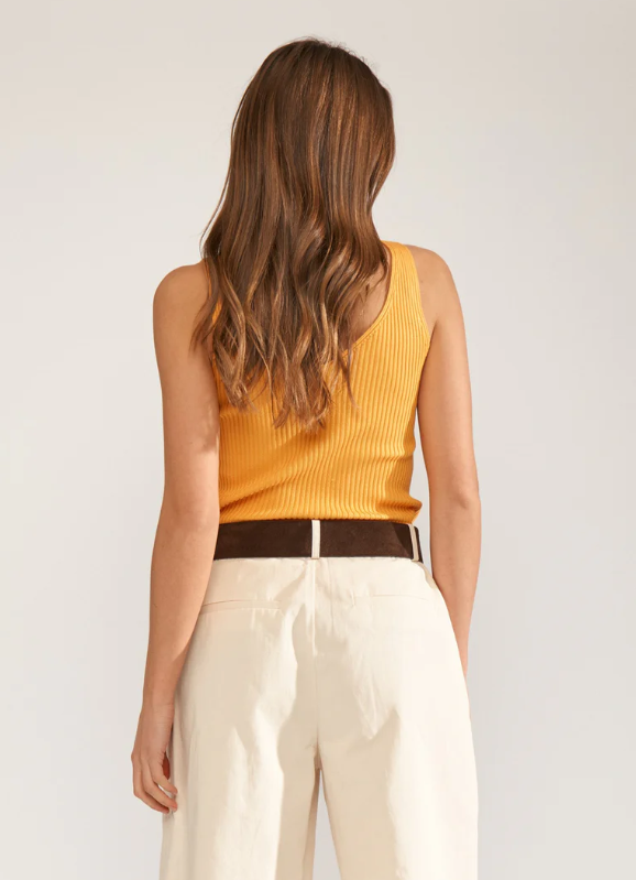 Realizzato in morbido tessuto a costine elasticizzato (80% viscosa, 20% poliammide), avvolge la silhouette con una vestibilità confortevole e naturale.