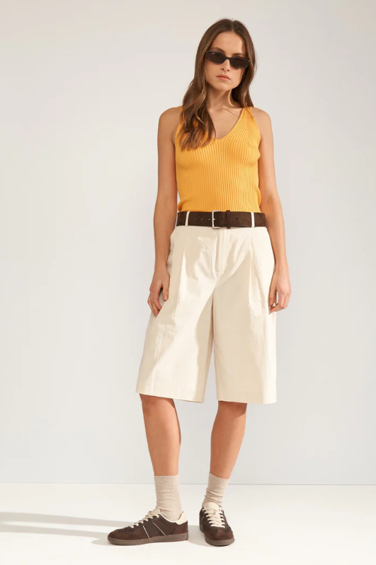 Il design si distingue per lo scollo a V sia sul davanti che sul retro, un dettaglio che valorizza la figura e aggiunge un tocco raffinato anche a un capo semplice.