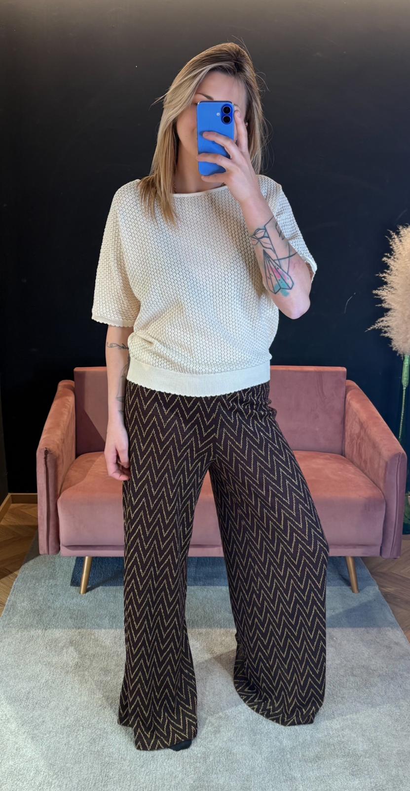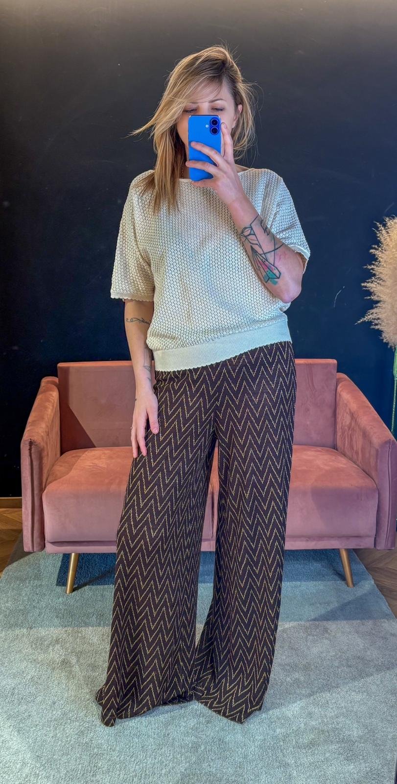 Pantalone Paloma Zigzag Lurex Marrone – Luce Studio