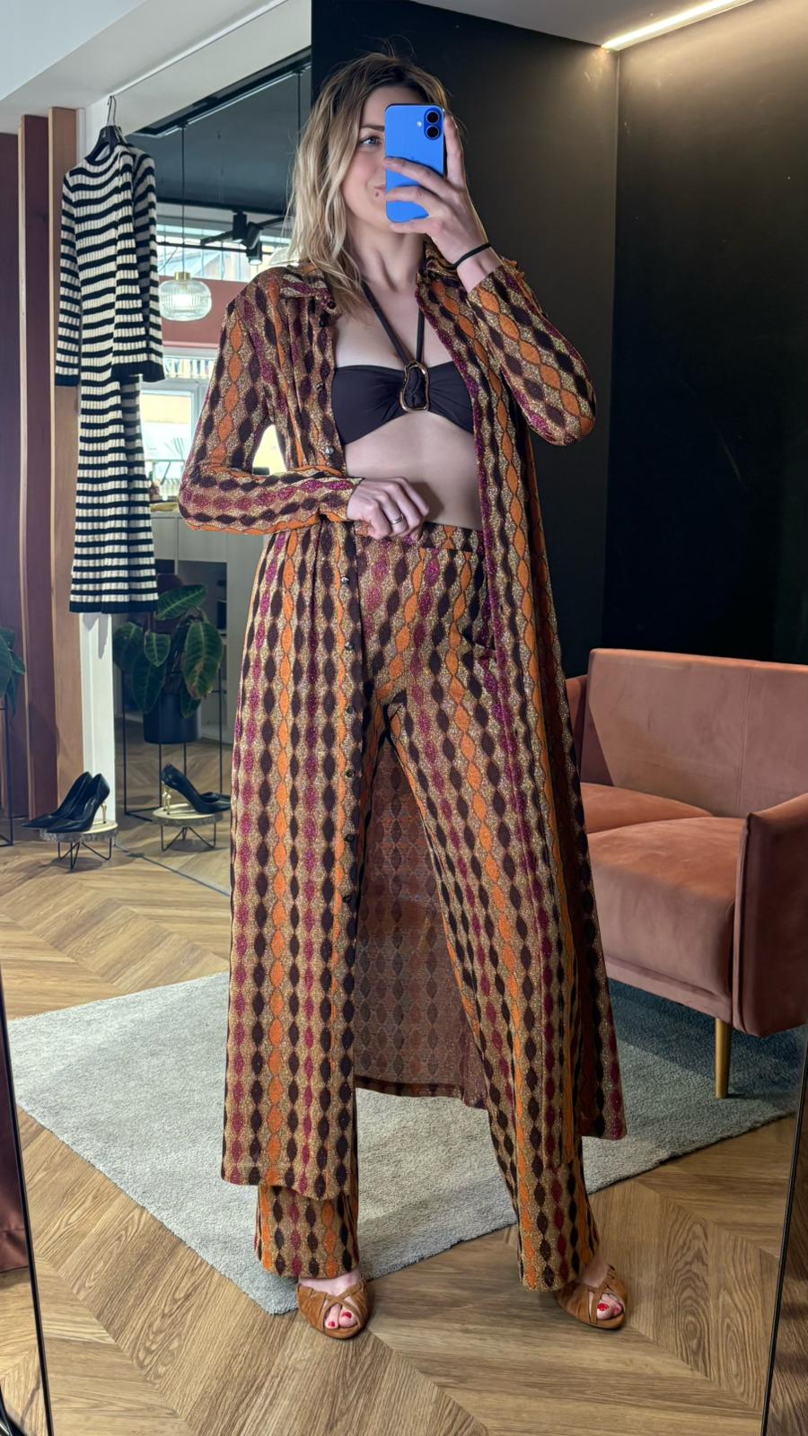 Perfetto con il suo coordinato per un look completo, oppure abbinato a top e camicie per un utilizzo più quotidiano.