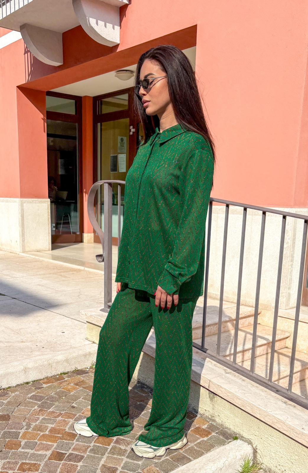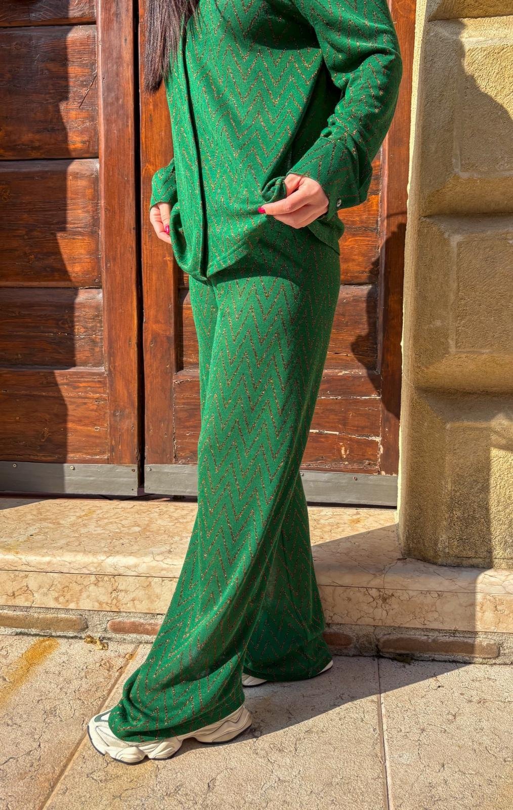 Pantalone Polinesia verde con zig zag in lurex rame – Luce Studio - Verde