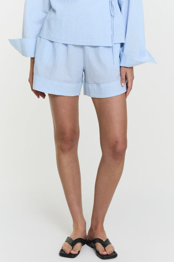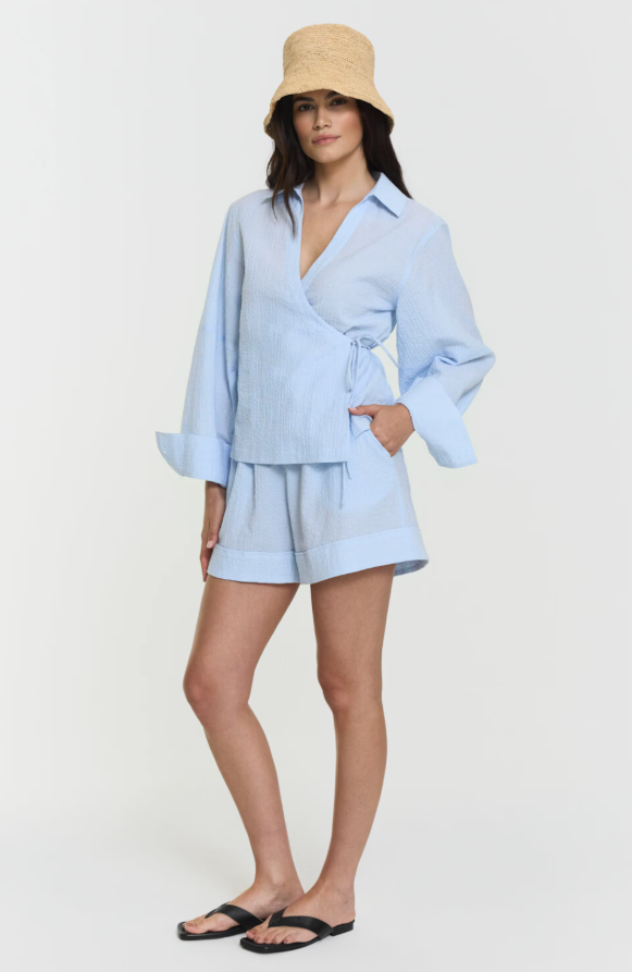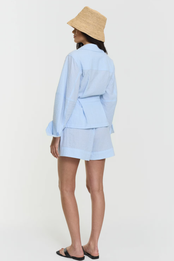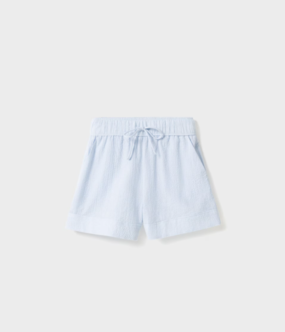 I Lusin Shorts di Twist & Tango nella variante Pale Blue Stripe reinterpretano lo short estivo con equilibrio e raffinatezza. Realizzati in 99% cotone e 1% spandex, offrono freschezza e una leggera elasticità che garantisce comfort e libertà di movimento.