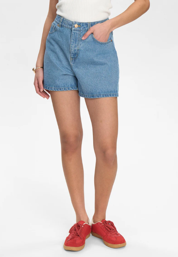 Shorts in denim Numph – lavaggio blu medio dal taglio femminile - Blu