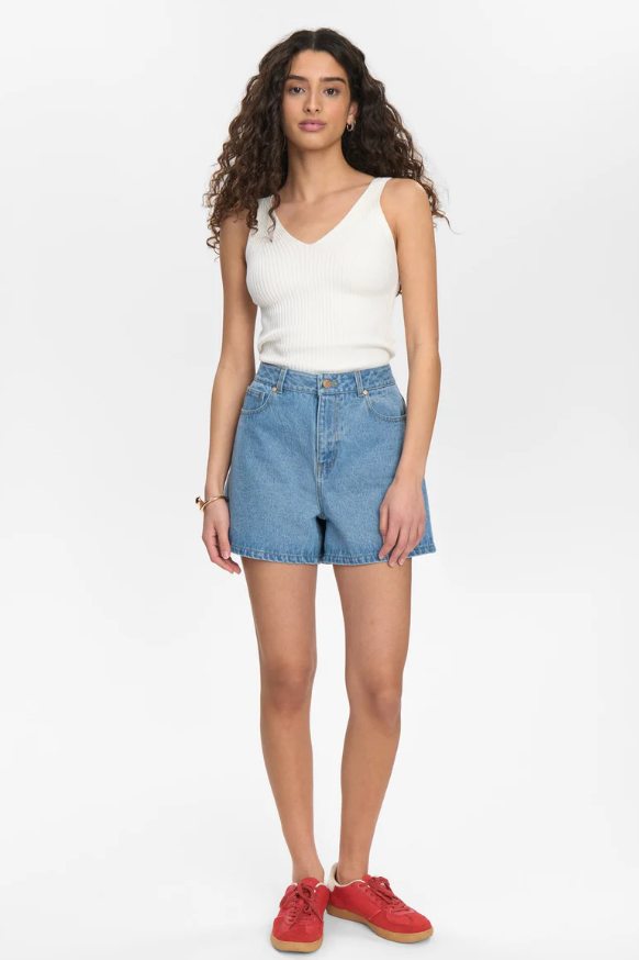 Questi shorts in denim Numph sono realizzati in jeans blu medio, con una linea pulita e una vestibilità femminile che valorizza senza costringere.