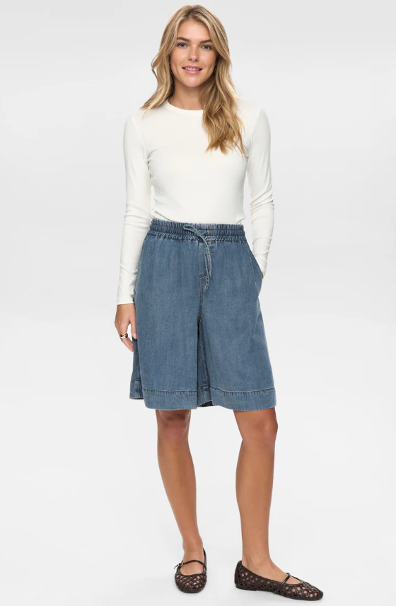 Shorts Nuelleda in denim leggero con elastico in vita