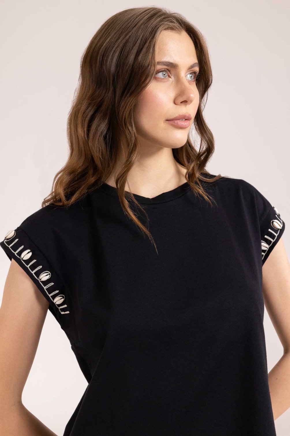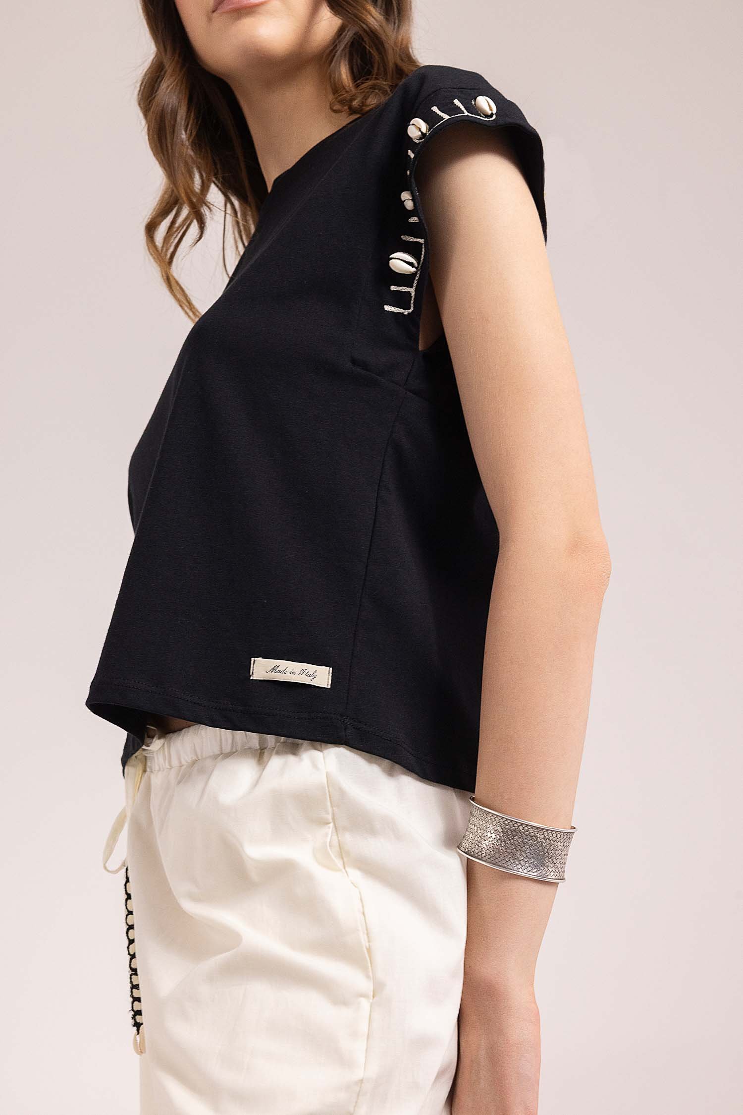 * Dettagli: Conchiglie e ricami applicati artigianalmente