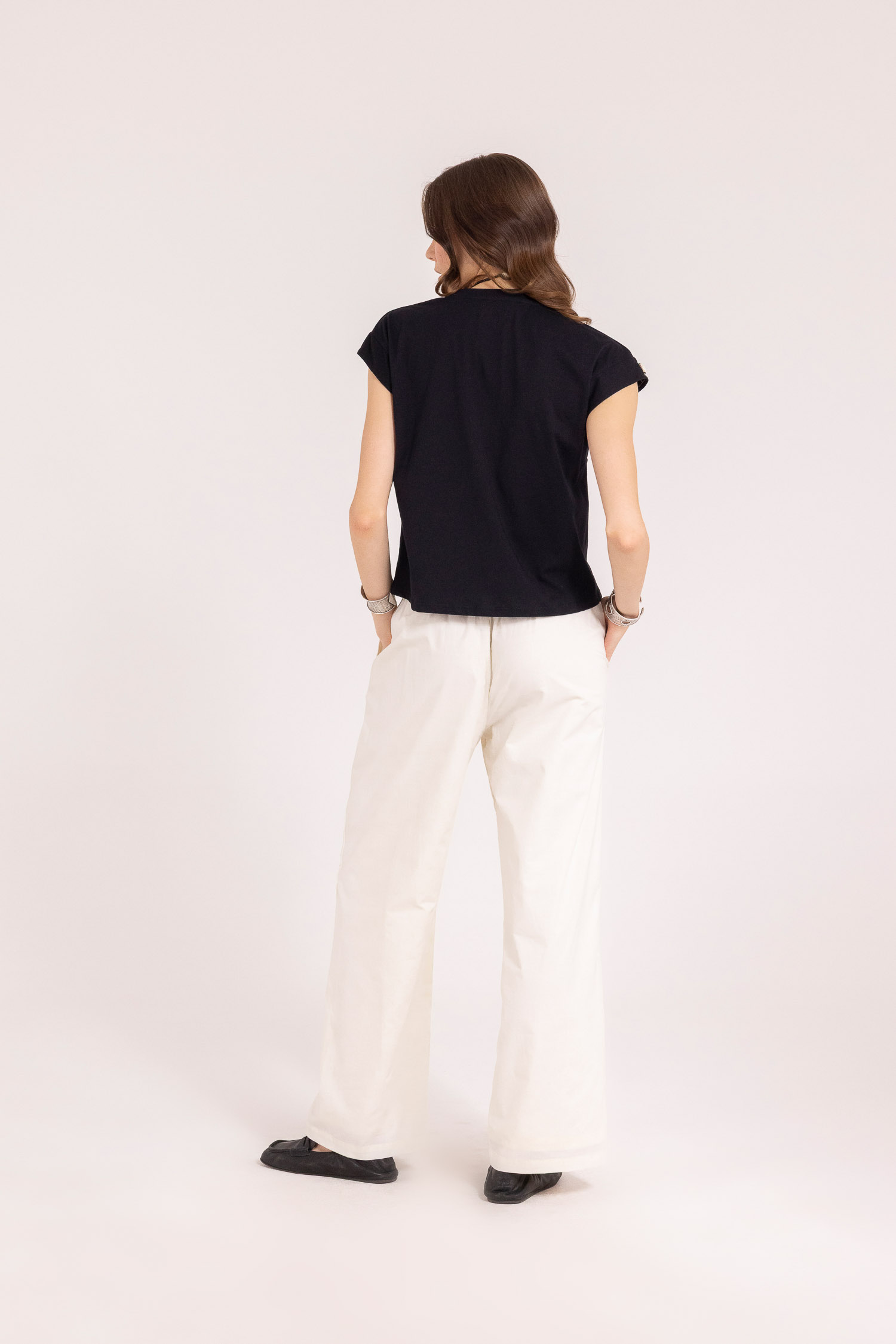 L’eleganza materica incontra il design contemporaneo in un capo che non passa inosservato. La Boxy Shell di Front Street 8 reinterpreta la t-shirt estiva trasformandola in un pezzo ricercato, dal forte contenuto estetico e artigianale.